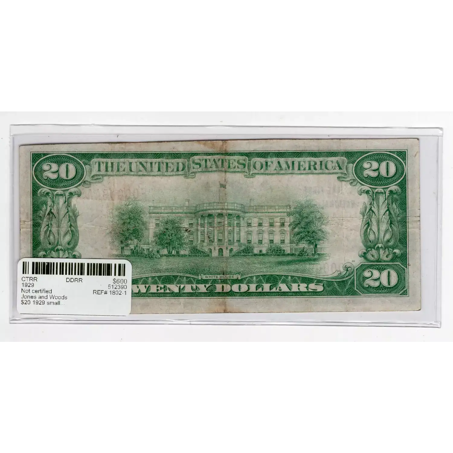 $20 1929 small brown seal. Small National Bank Notes 1802-1