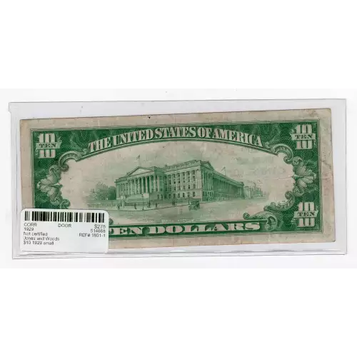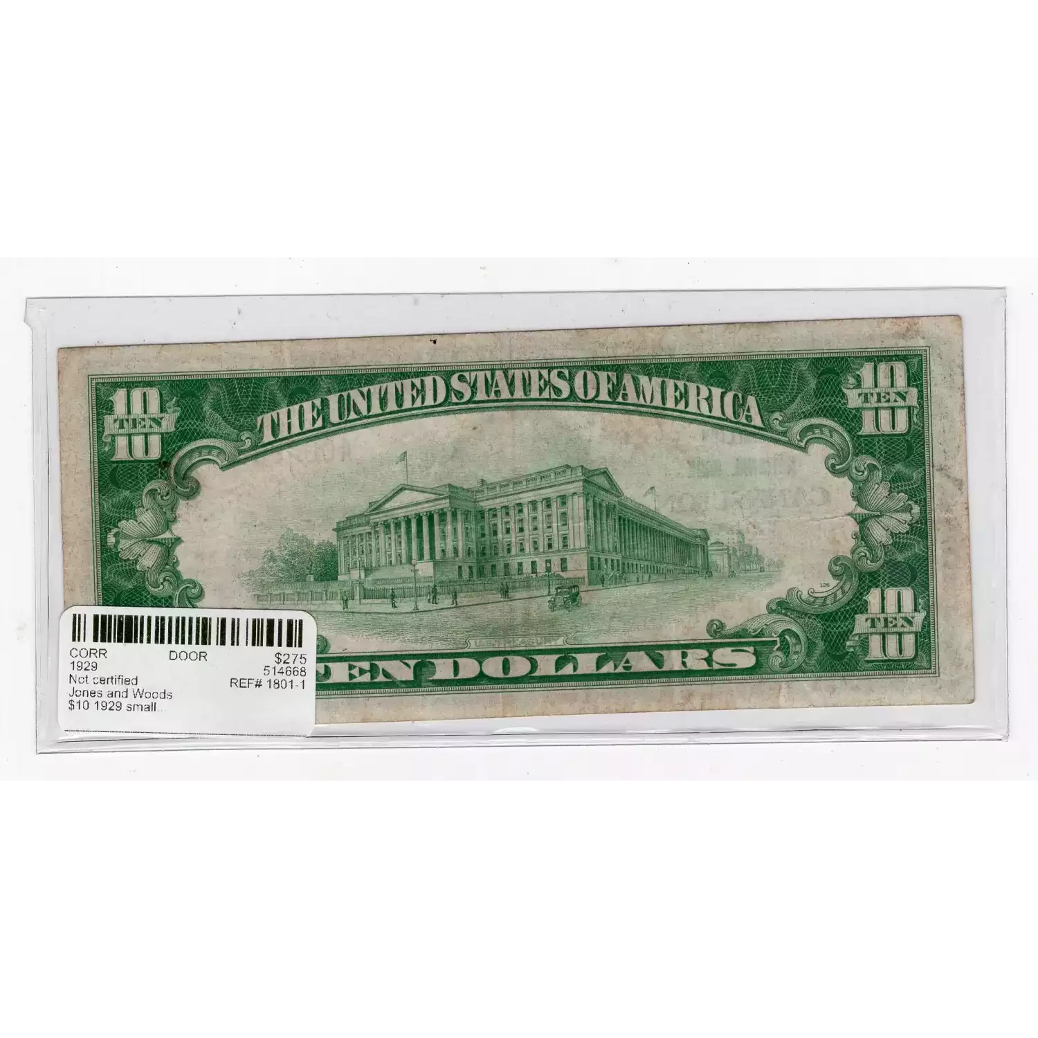 $10 1929 small brown seal. Small National Bank Notes 1801-1