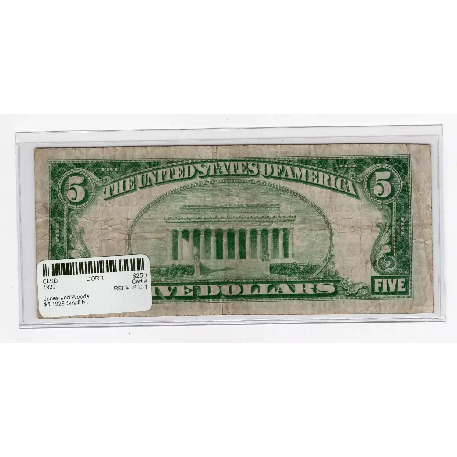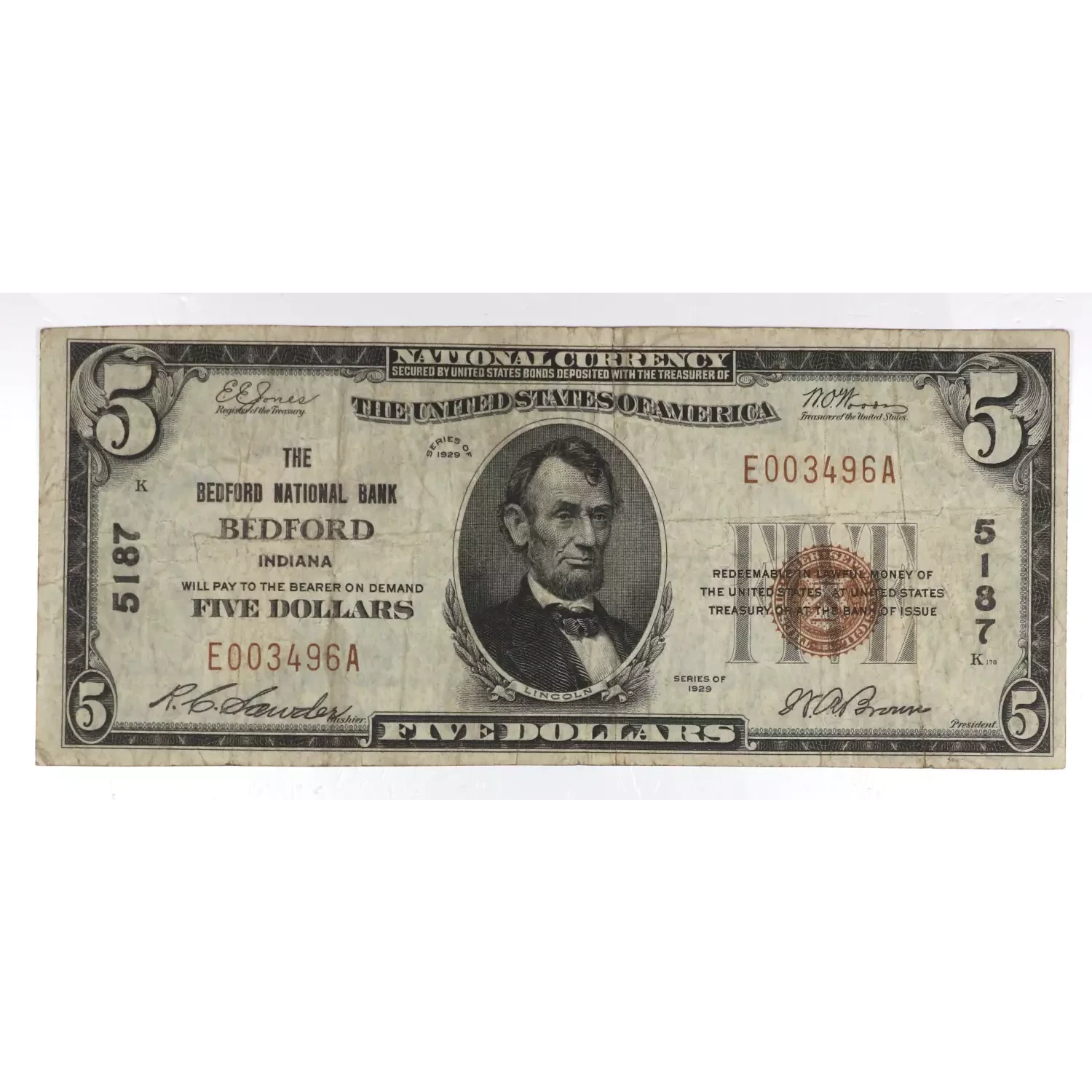 $5 1929 Small brown seal Small National Bank Notes 1800-1