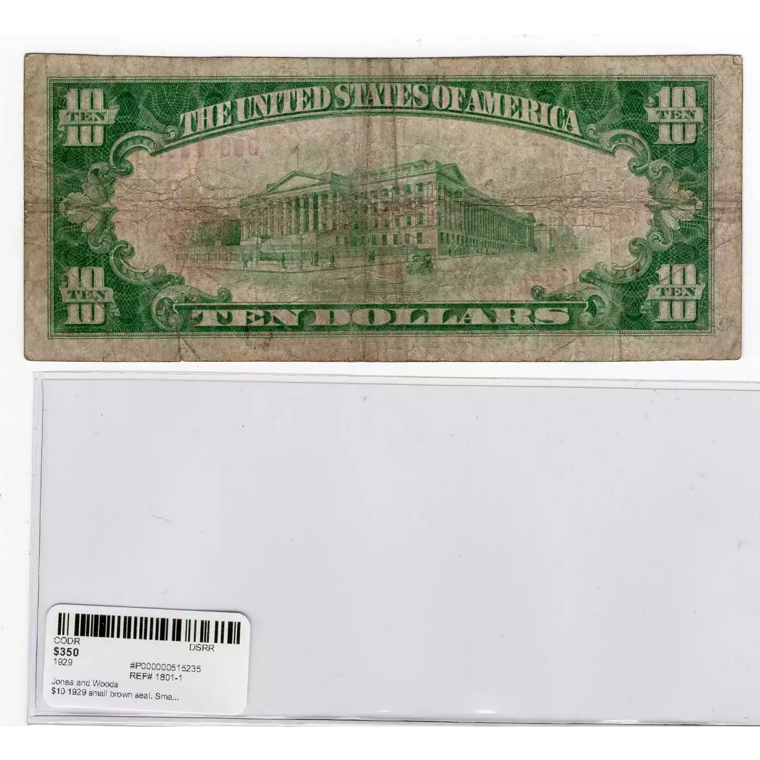 $10 1929 small brown seal. Small National Bank Notes 1801-1