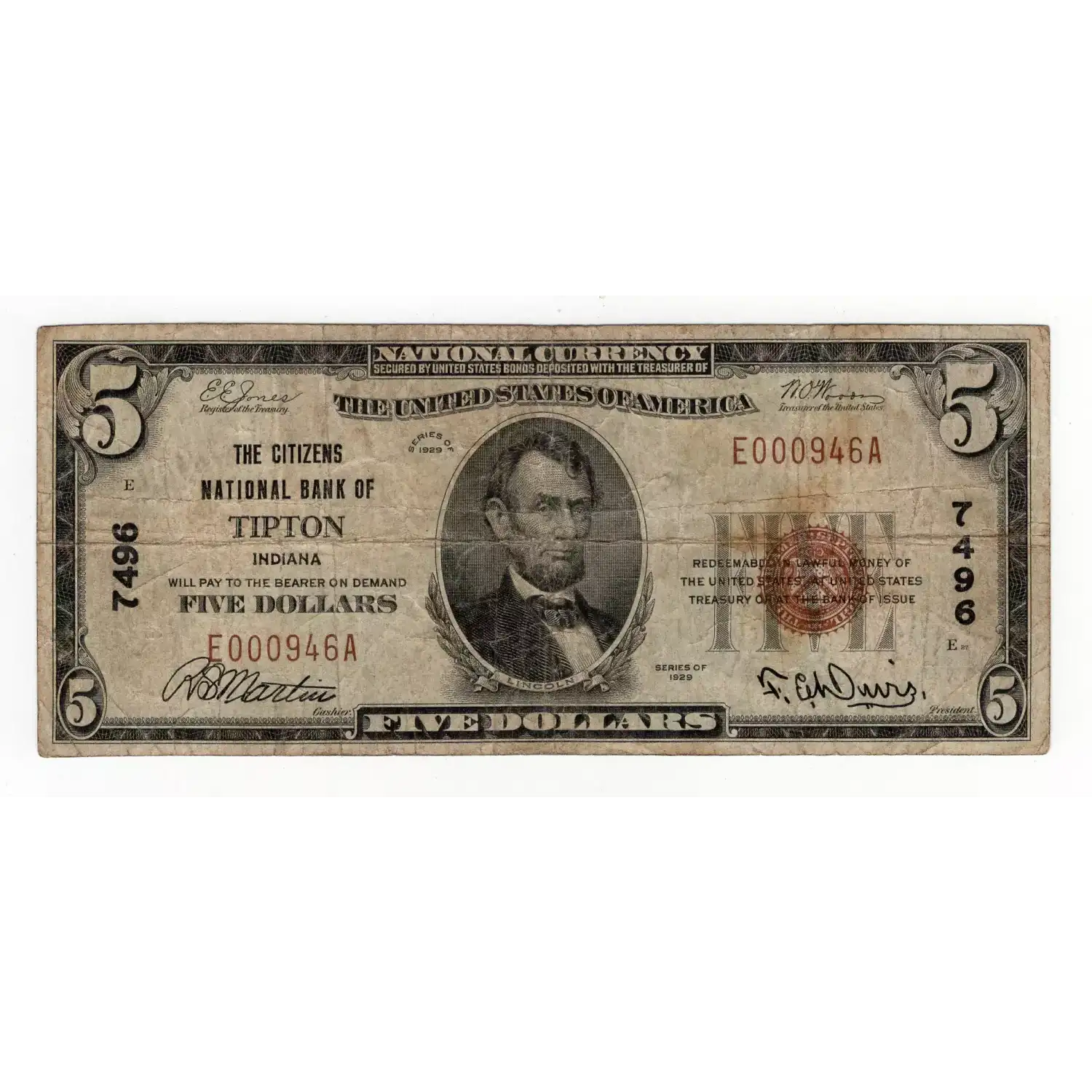 $5 1929 Small brown seal Small National Bank Notes 1800-1