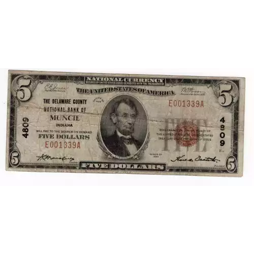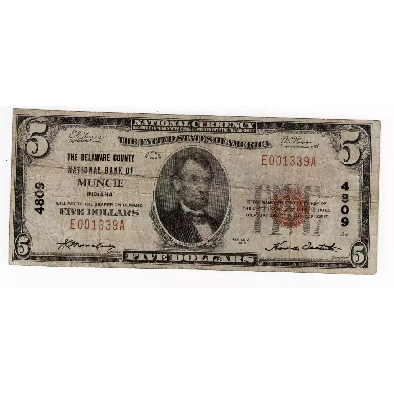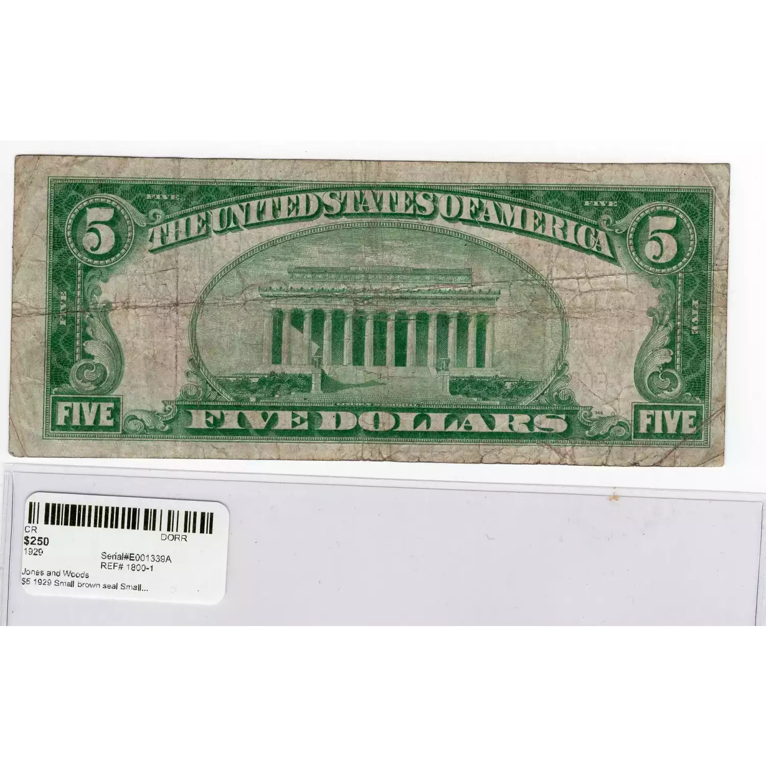 $5 1929 Small brown seal Small National Bank Notes 1800-1