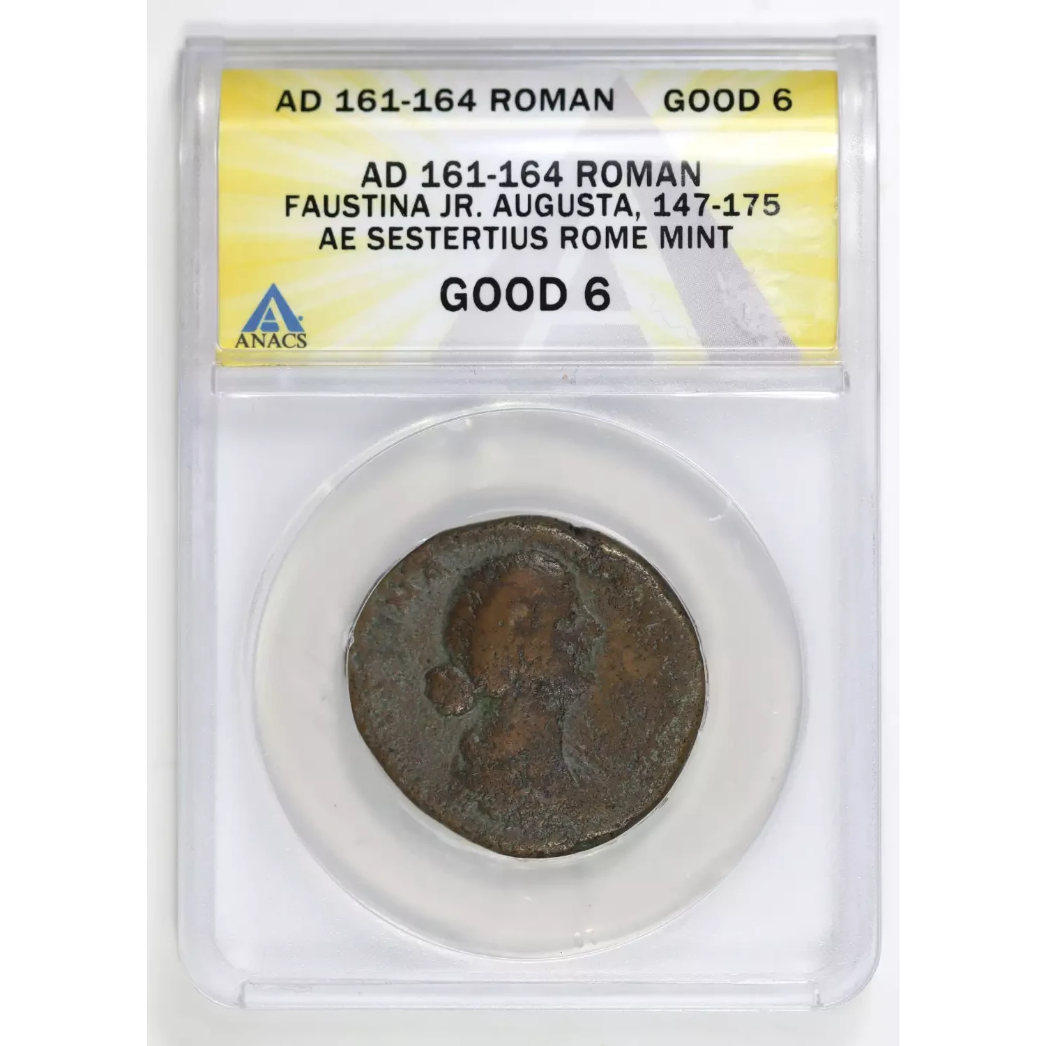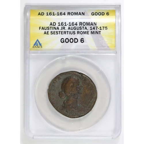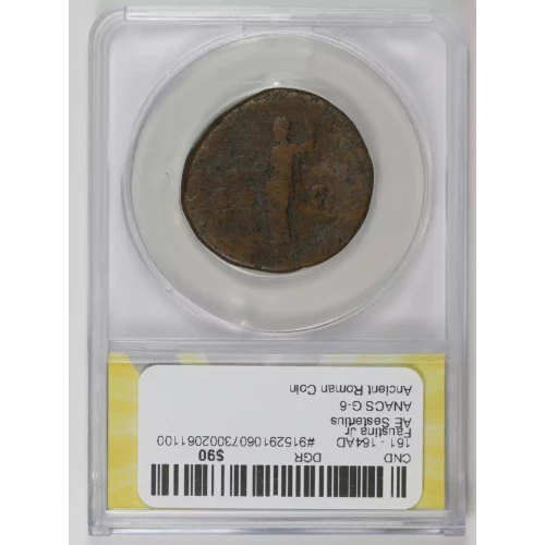 161 - 164AD Faustina Jr AE Sestertius Ancient Roman Coin ANACS G-6