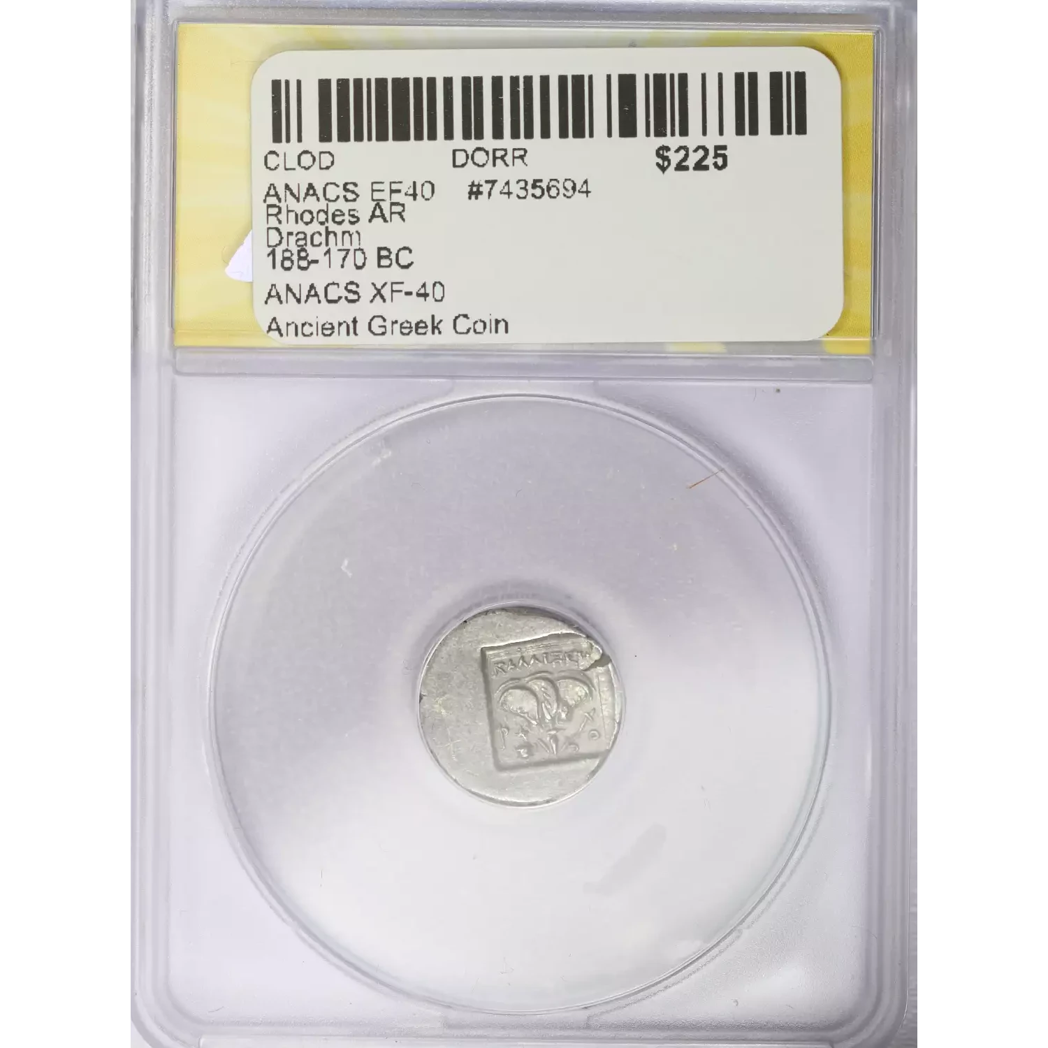 | Year | ANACS EF40 Rhodes AR Drachm 188-170 BC |