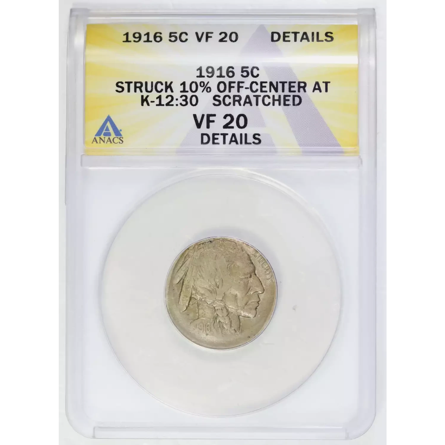 1916 Nickel Indian Head or Buffalo ANACS VF-20 Details 10% Off Center