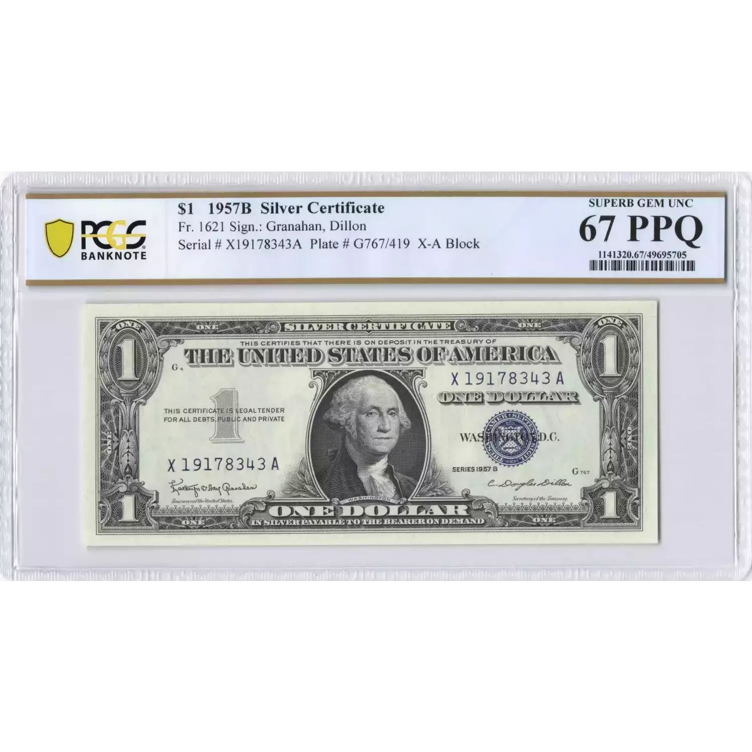 $1 1957-B blue seal. Small Silver Certificates 1621