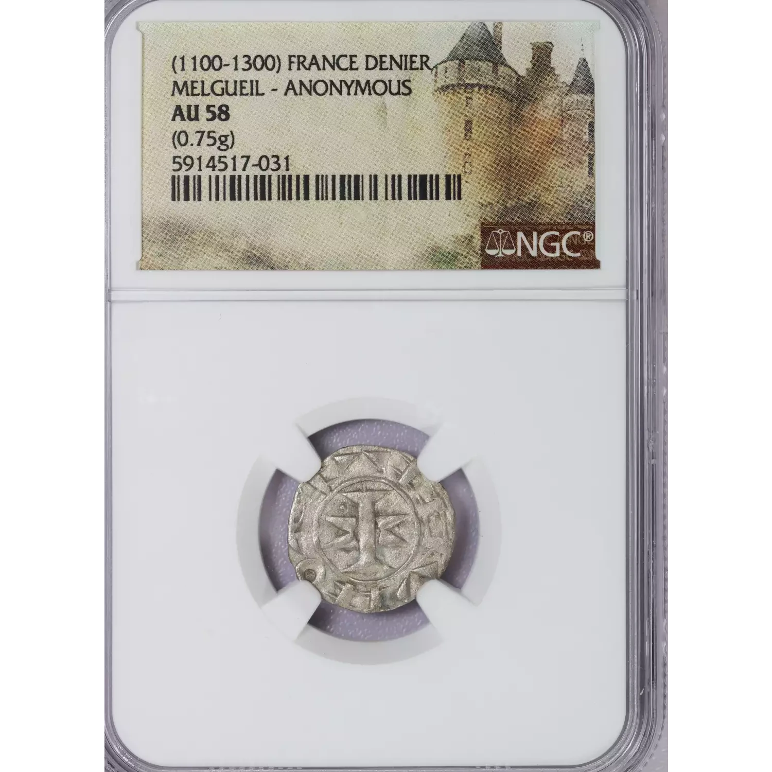 | Year | NGC AU58 France, Melgueil Anonymous AR Denier 1100-1300 |