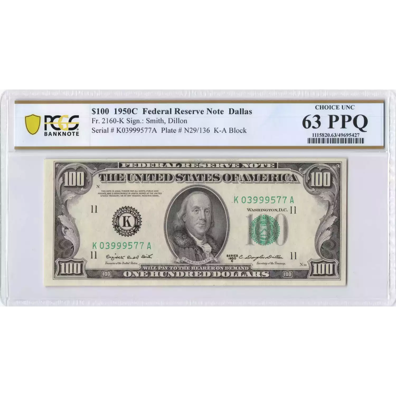 $100 1950-C. Small Size $100 Federal Reserve Notes 2160-K
