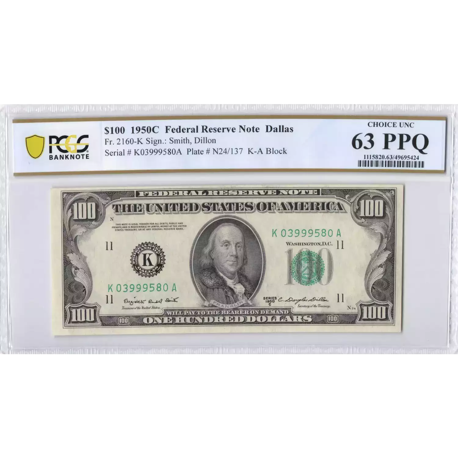 $100 1950-C. Small Size $100 Federal Reserve Notes 2160-K
