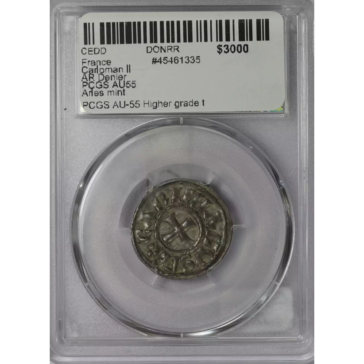 | Year | France Carloman II AR Denier PCGS AU55 Arles mint |