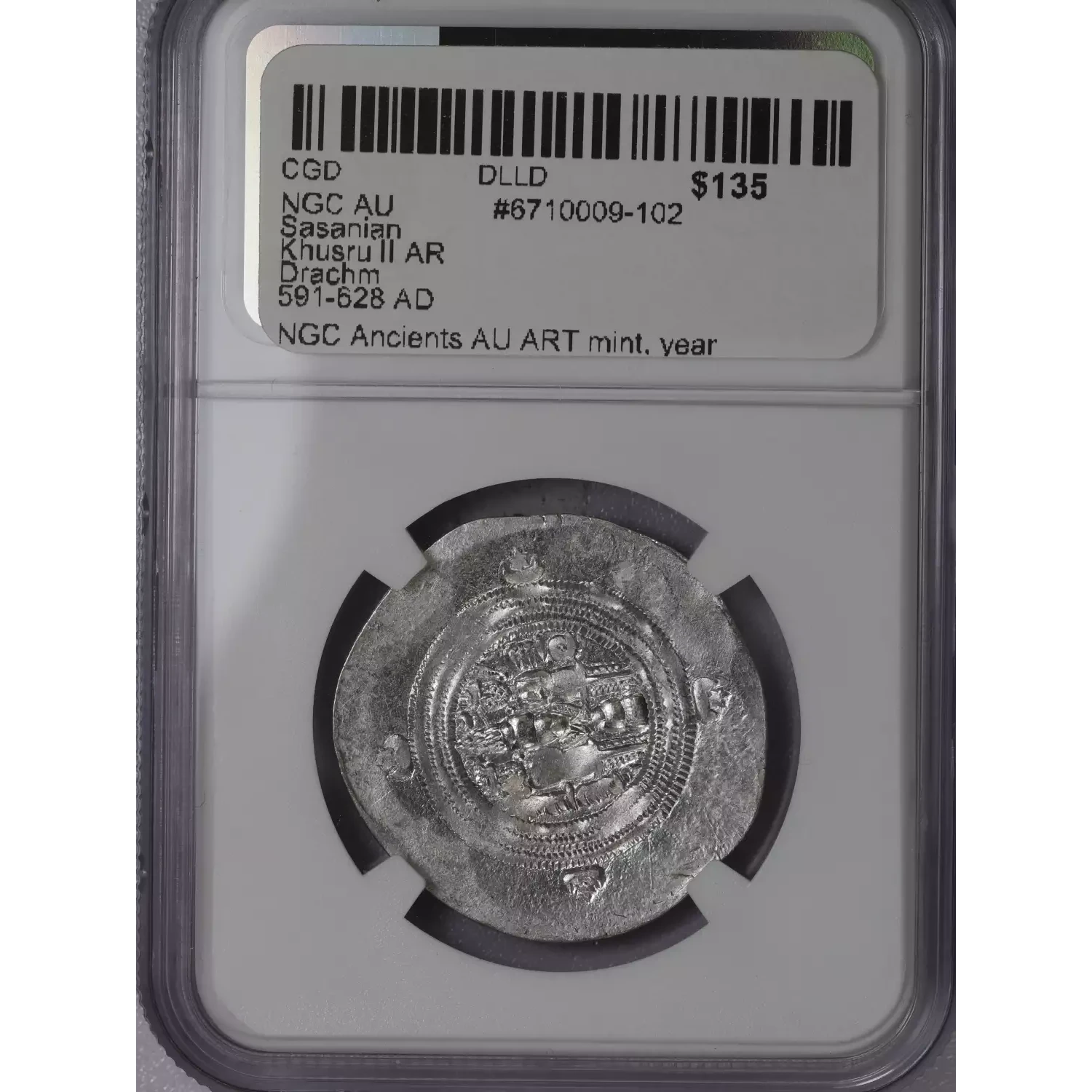 | Year | NGC AU Sasanian Khusru II AR Drachm 591-628 AD |