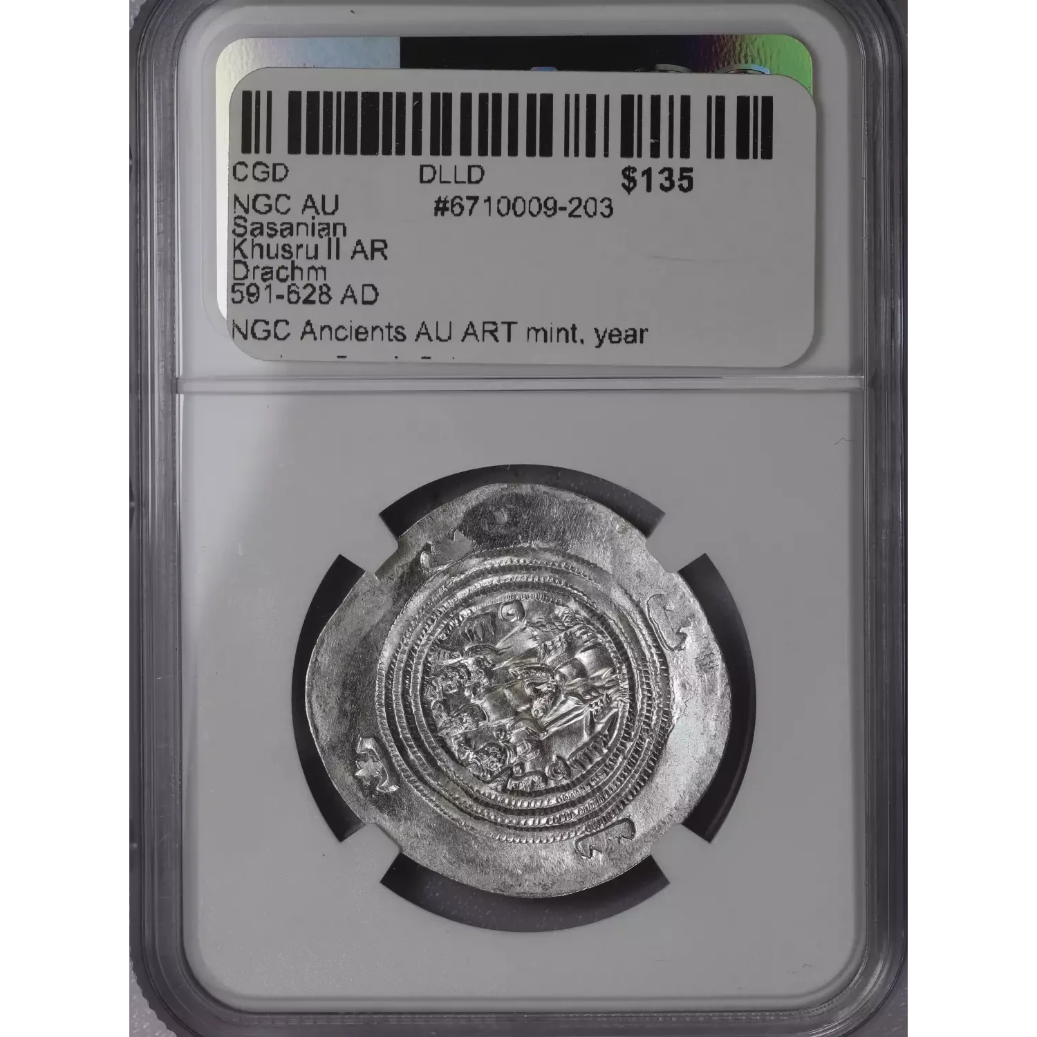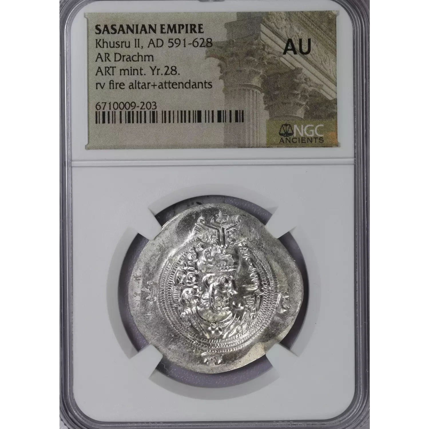 | Year | NGC AU Sasanian Khusru II AR Drachm 591-628 AD |