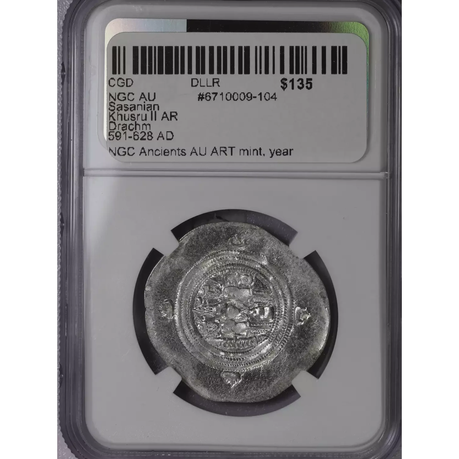 | Year | NGC AU Sasanian Khusru II AR Drachm 591-628 AD |