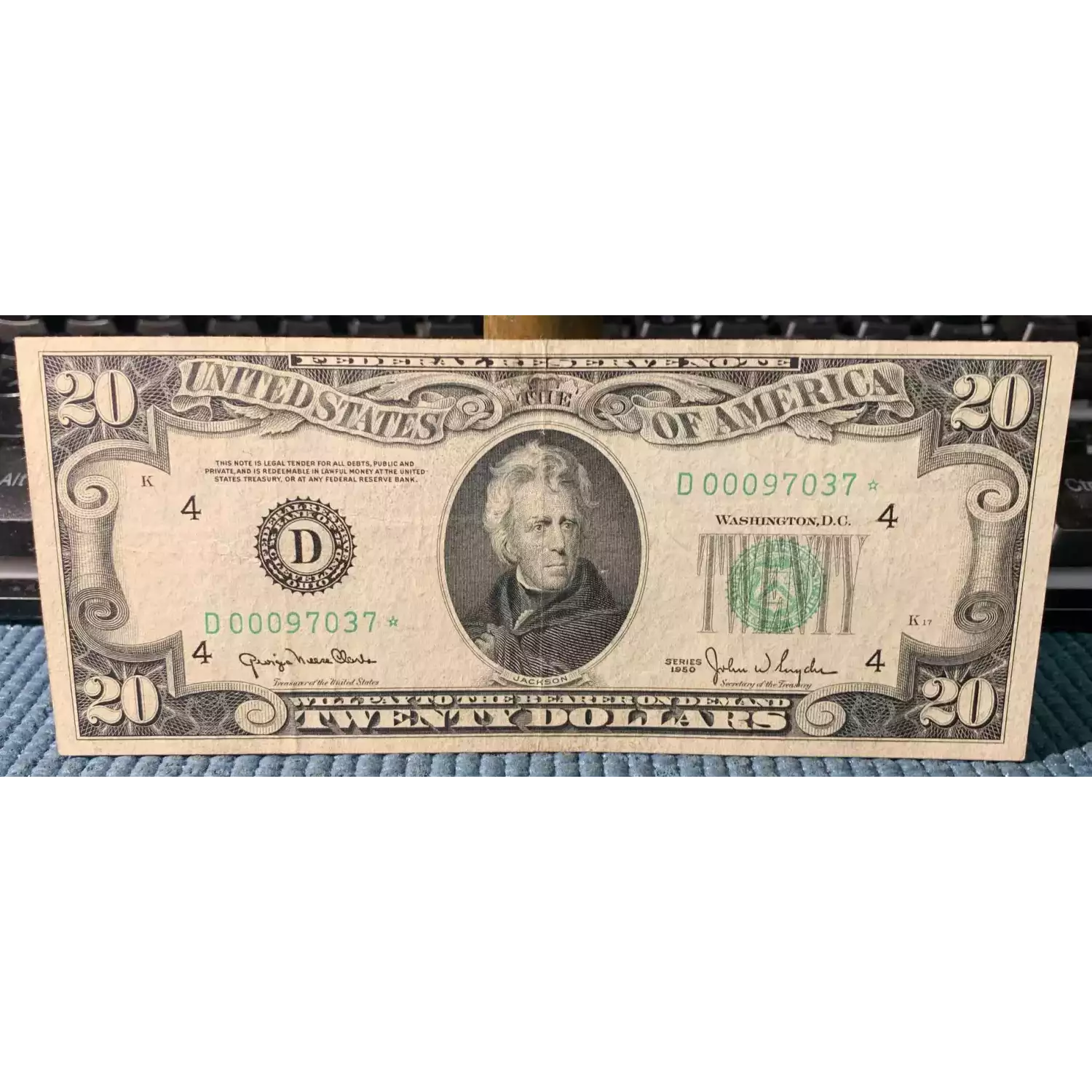 $20 1950 blue-Green seal. Small Size $20 Federal Reserve Notes 2059-D*