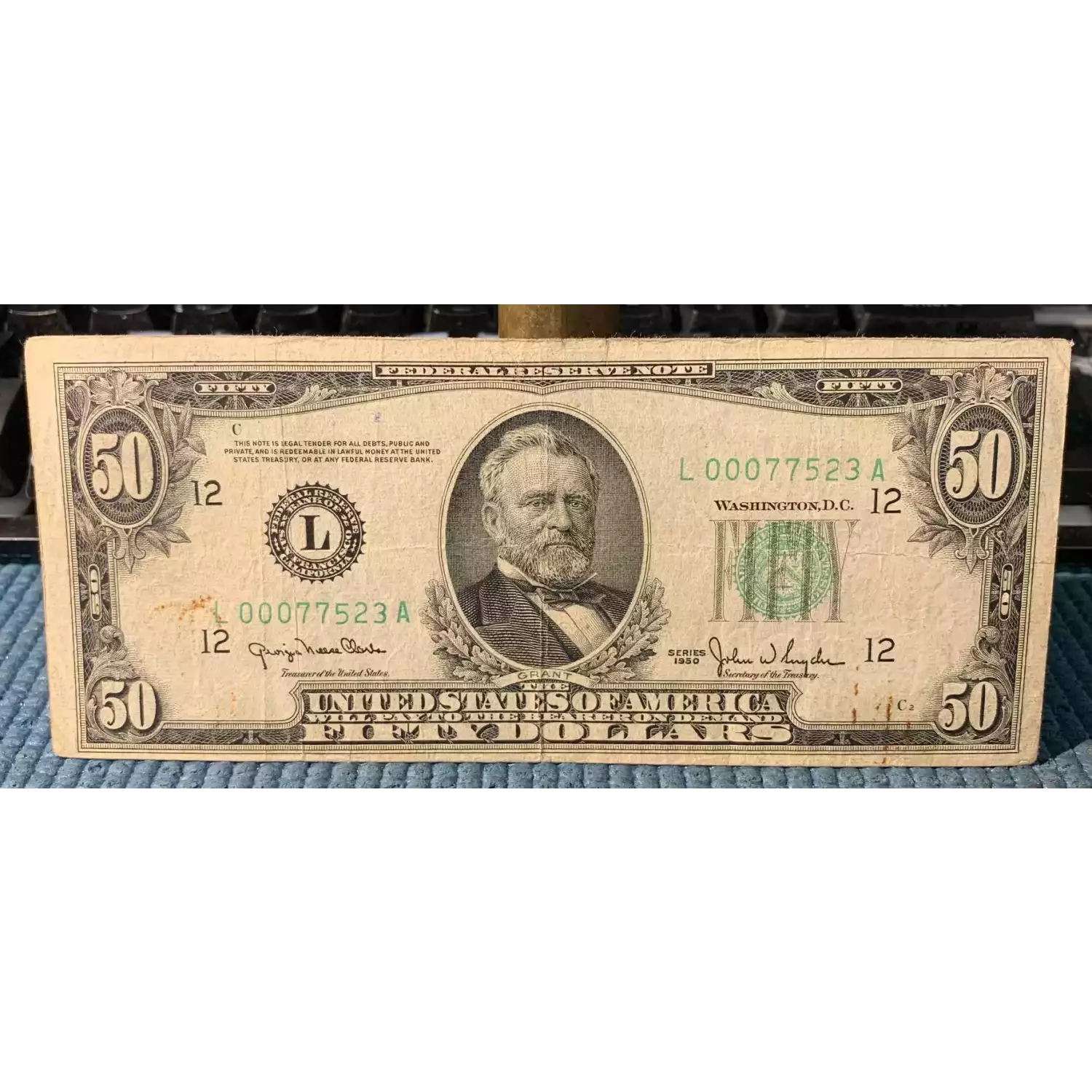 $50 1950 blue-Green seal. Small Size $50 Federal Reserve Notes 2107-L