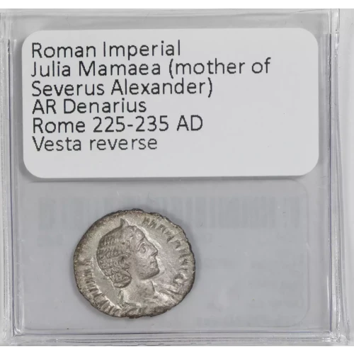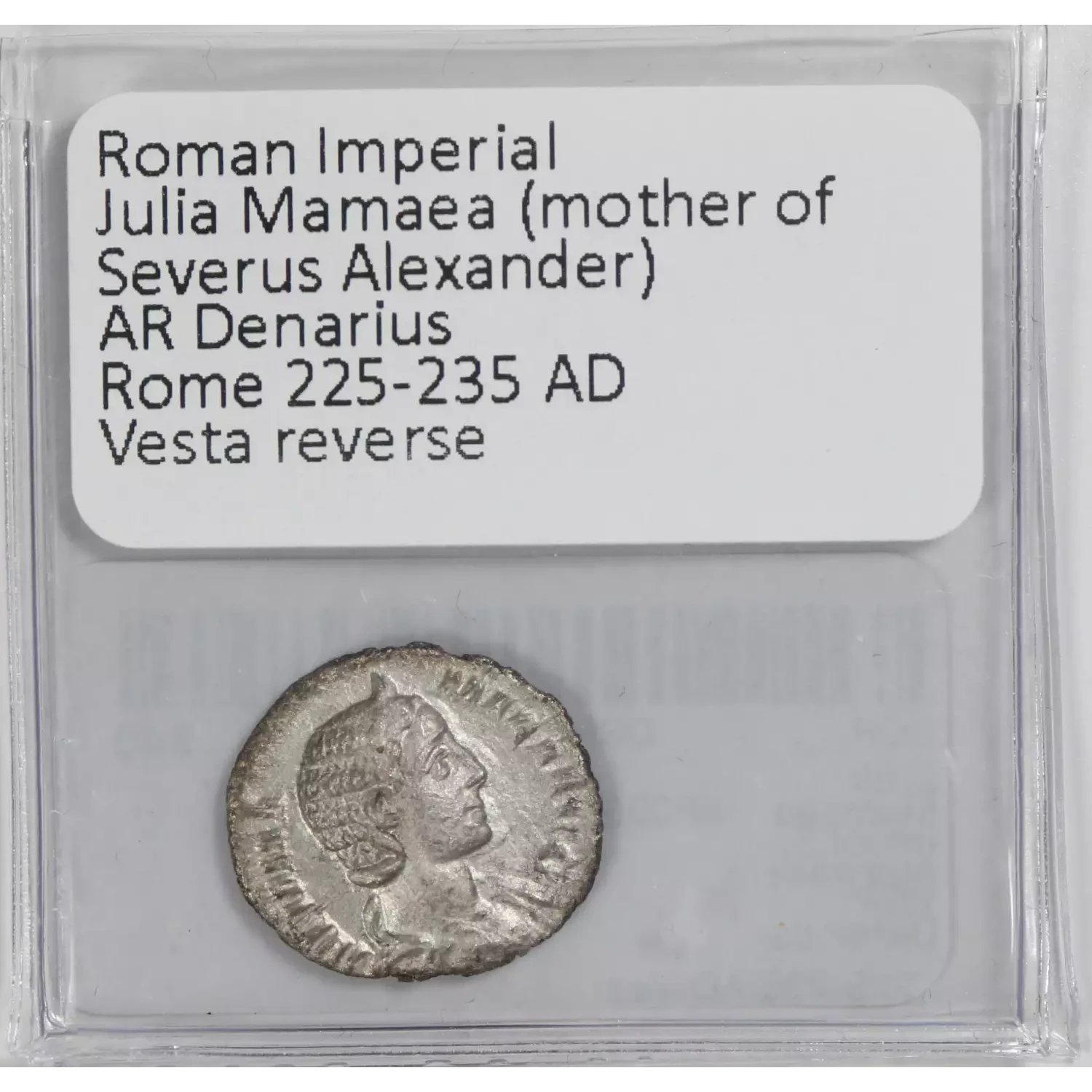 Julia Mamaea (m. of S. Alexander) AR Denarius Ancient Roman Coin 225-235 AD Vesta rx.