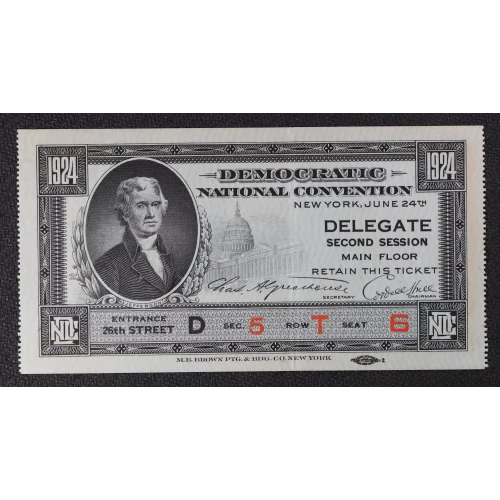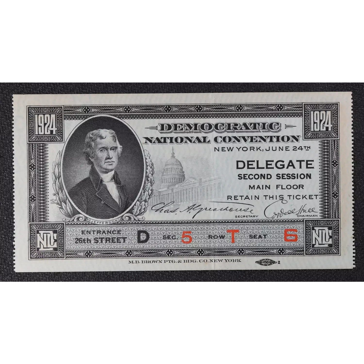 1924 Democratic National Convention Delegate Ticket, Thomas Jefferson portrait