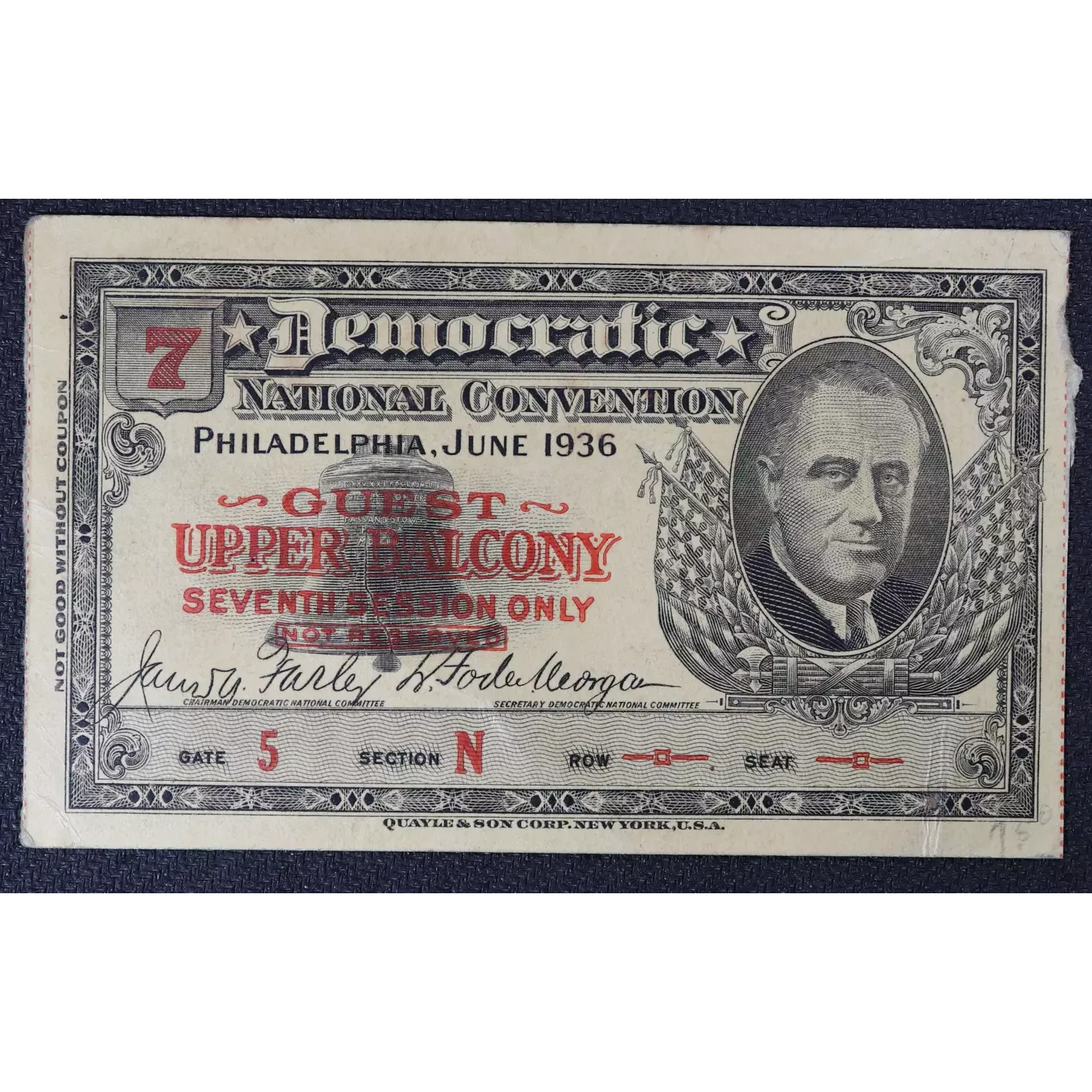 1936 Democratic National Convention Guest Ticket, Franklin Roosevelt portrait