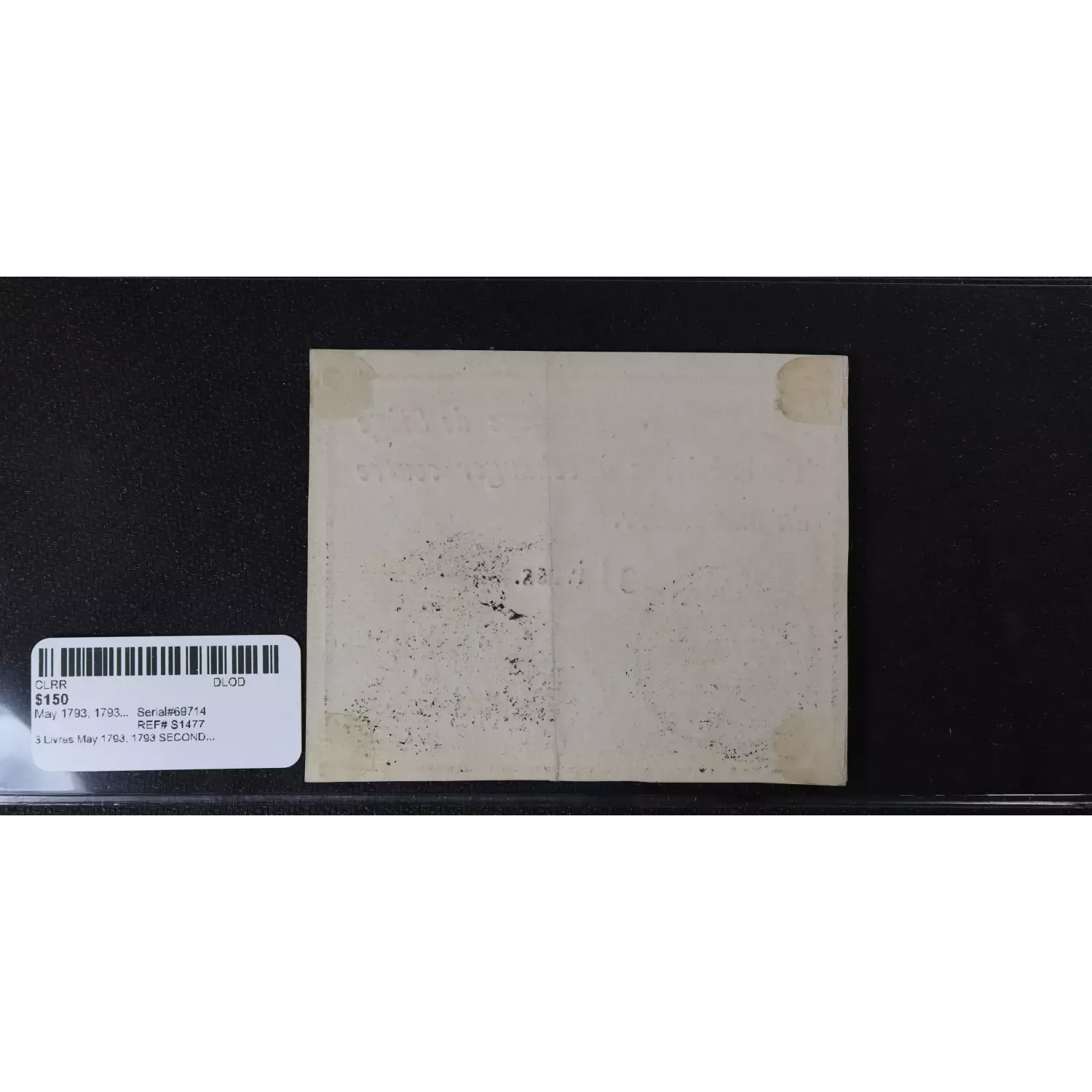 3 Livres May 1793, 1793 SECOND ISSUE Germany S1477