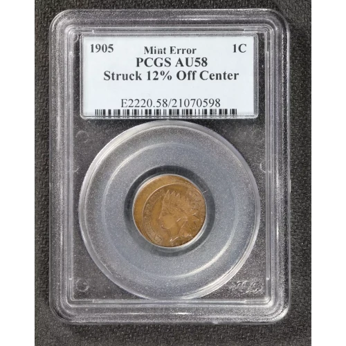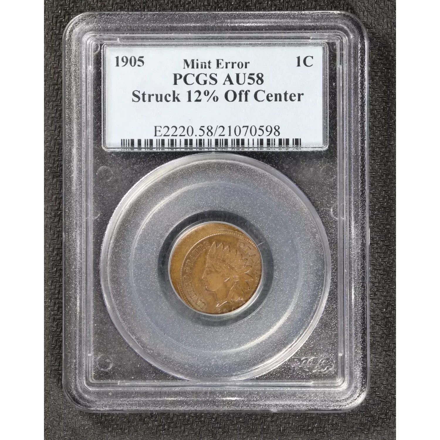 1905 Small Cents Indian Head PCGS AU-58 BN Stuck 12% Off Center