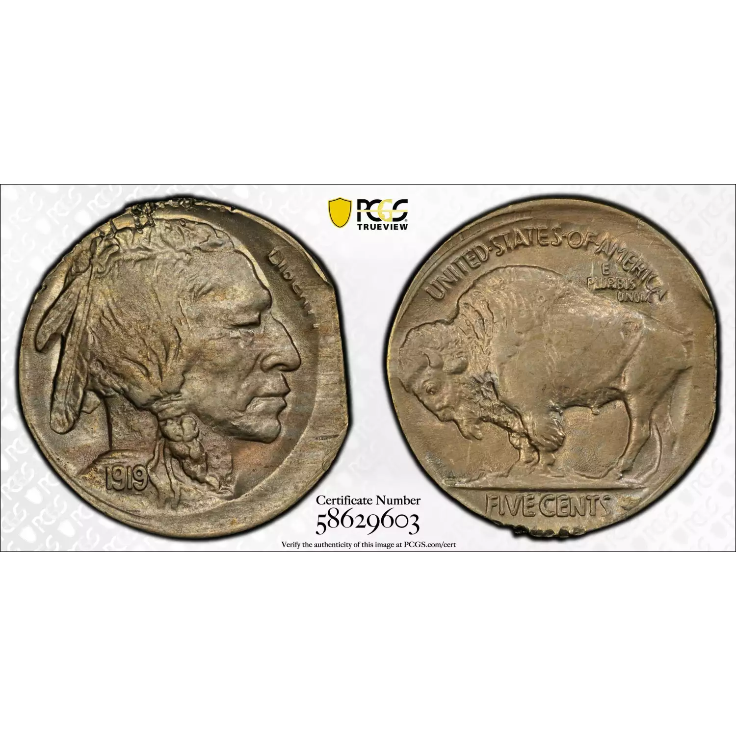 1919 Nickel Indian Head or Buffalo PCGS Genuine - AU Details (98 - Damage) Broadstruck W/ Straight Clip