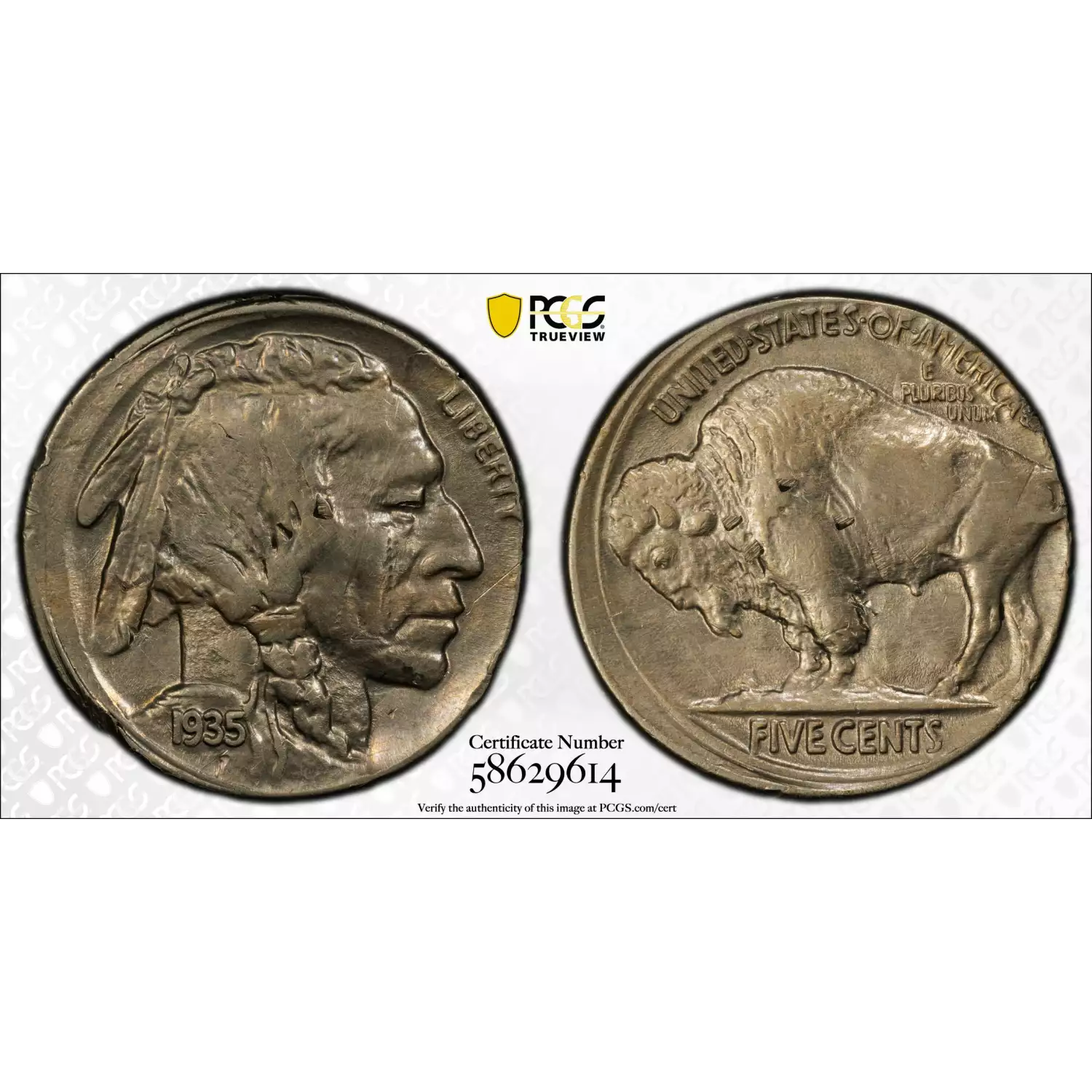 1935 Nickel Indian Head or Buffalo PCGS Genuine - AU Details (98 - Damage) Struck 3% Off Center