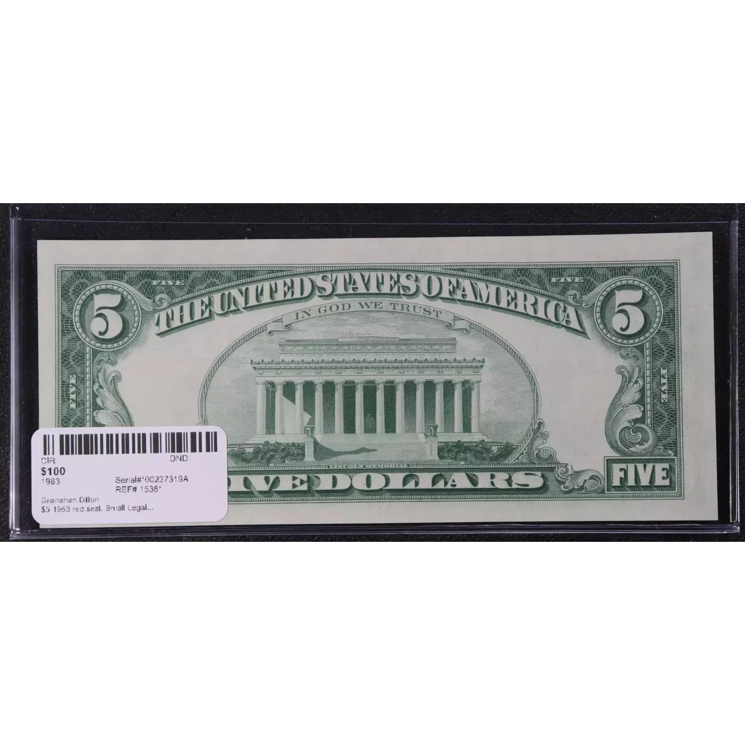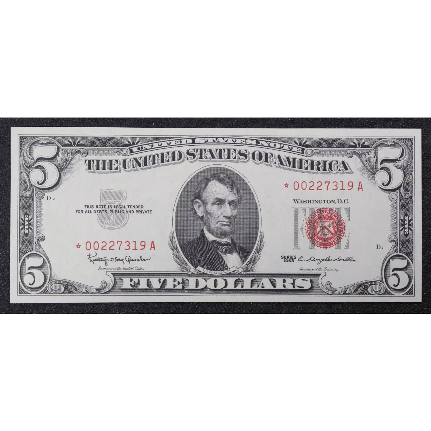$5 1963 red seal. Small Legal Tender Notes 1536*