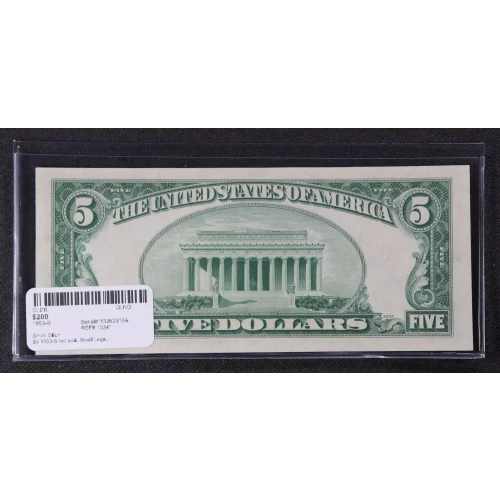$5 1953-B red seal. Small Legal Tender Notes 1534*