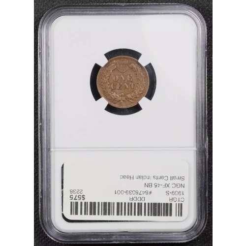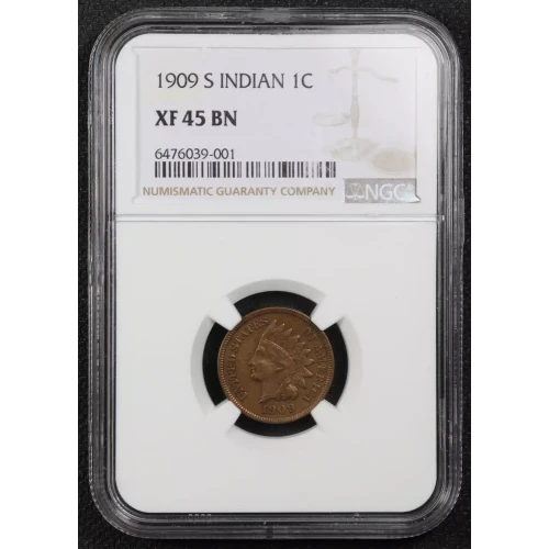 1909-S Small Cents Indian Head NGC XF-45 BN
