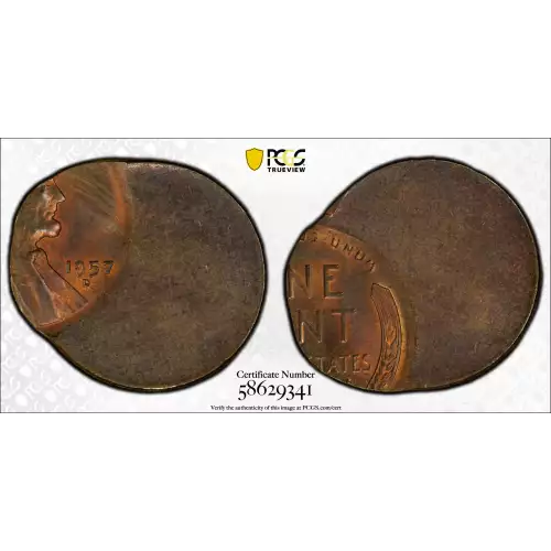 1957-D Small Cents Lincoln, Wheat Ears Reverse PCGS MS-64 Struck 60% Off Center