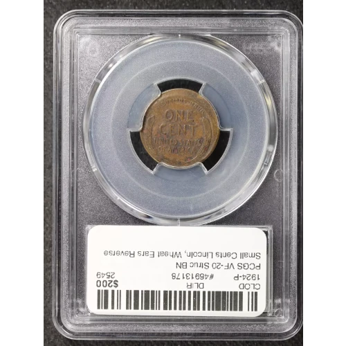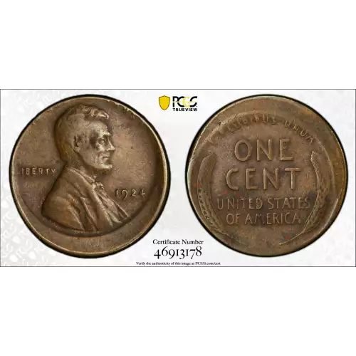 1924 Small Cents Lincoln, Wheat Ears Reverse PCGS VF-20 Struck 10% Off Center BN