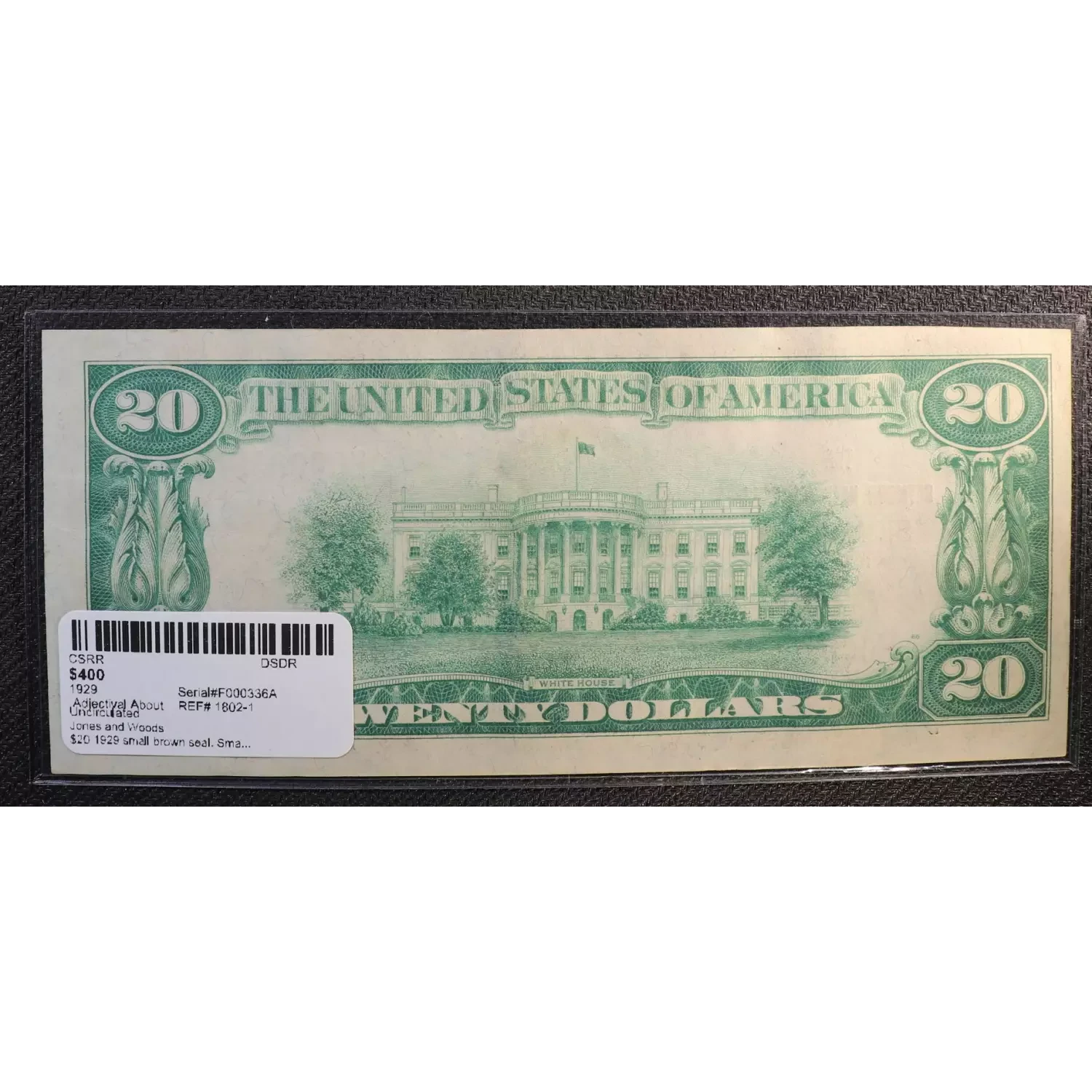 $20 1929 small brown seal. Small National Bank Notes 1802-1