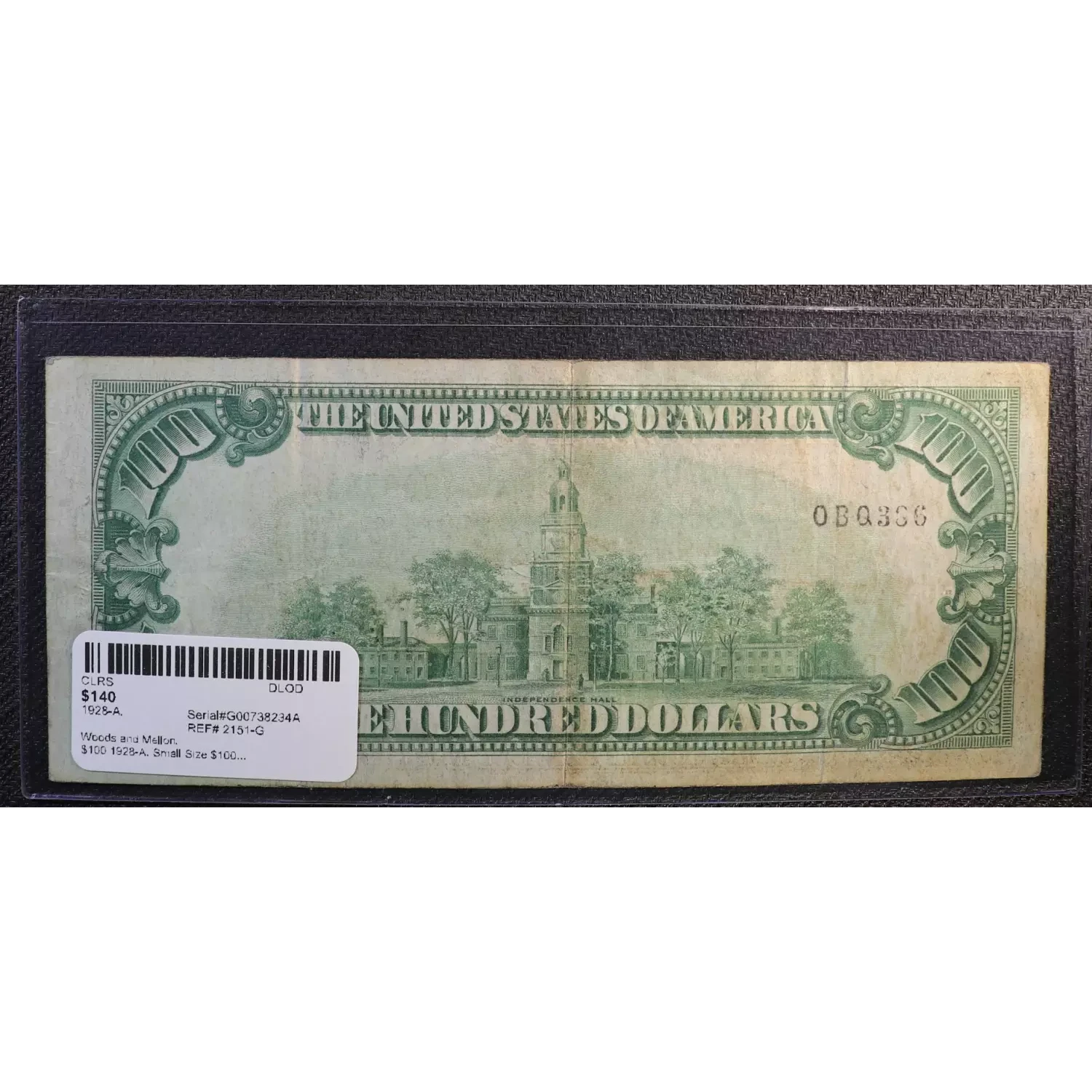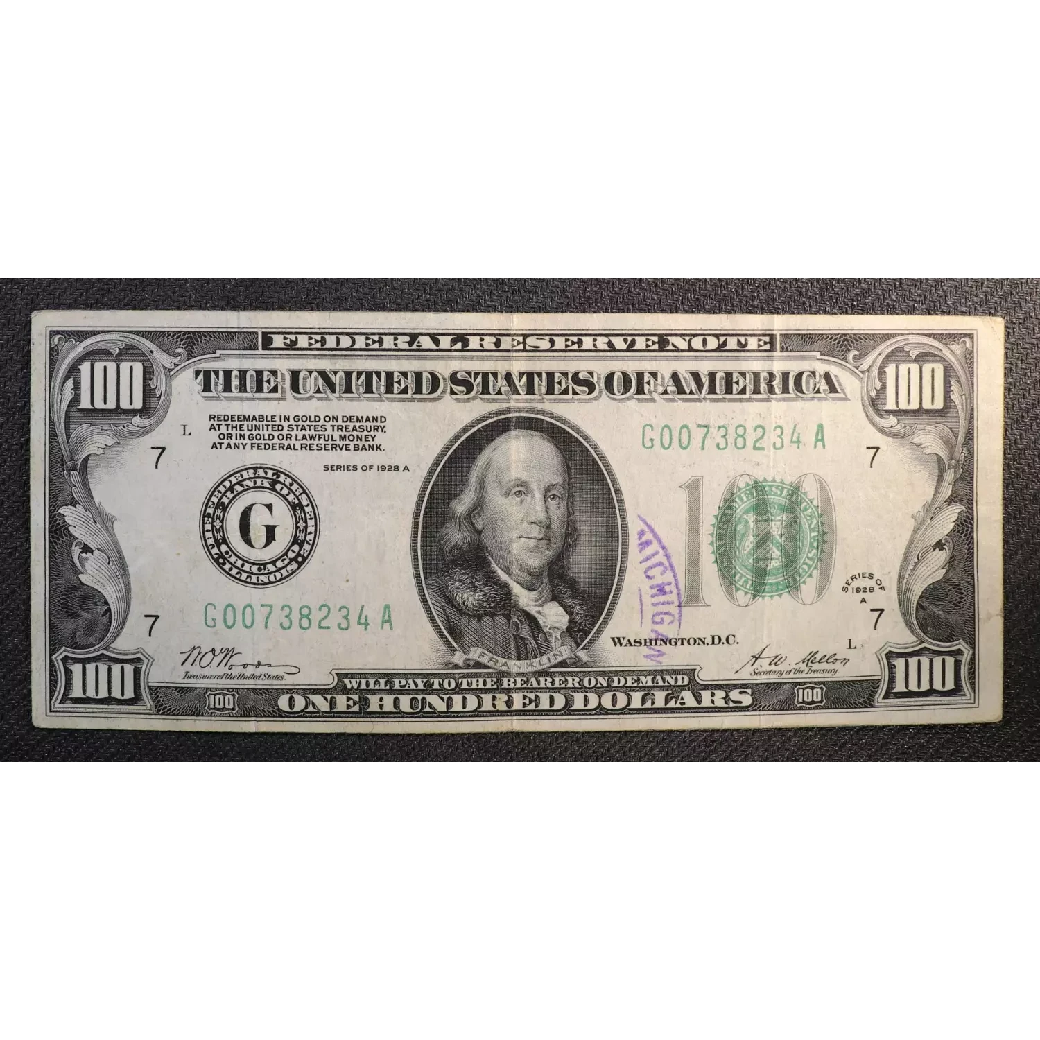 $100 1928-A. Small Size $100 Federal Reserve Notes 2151-G