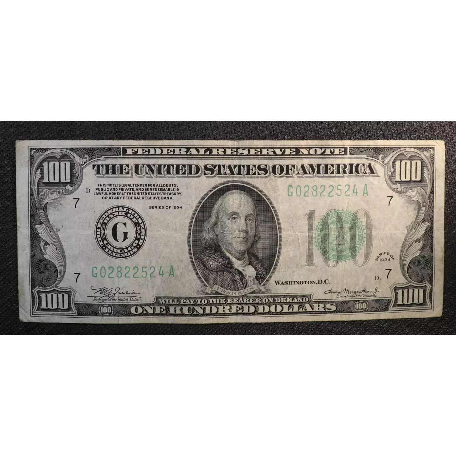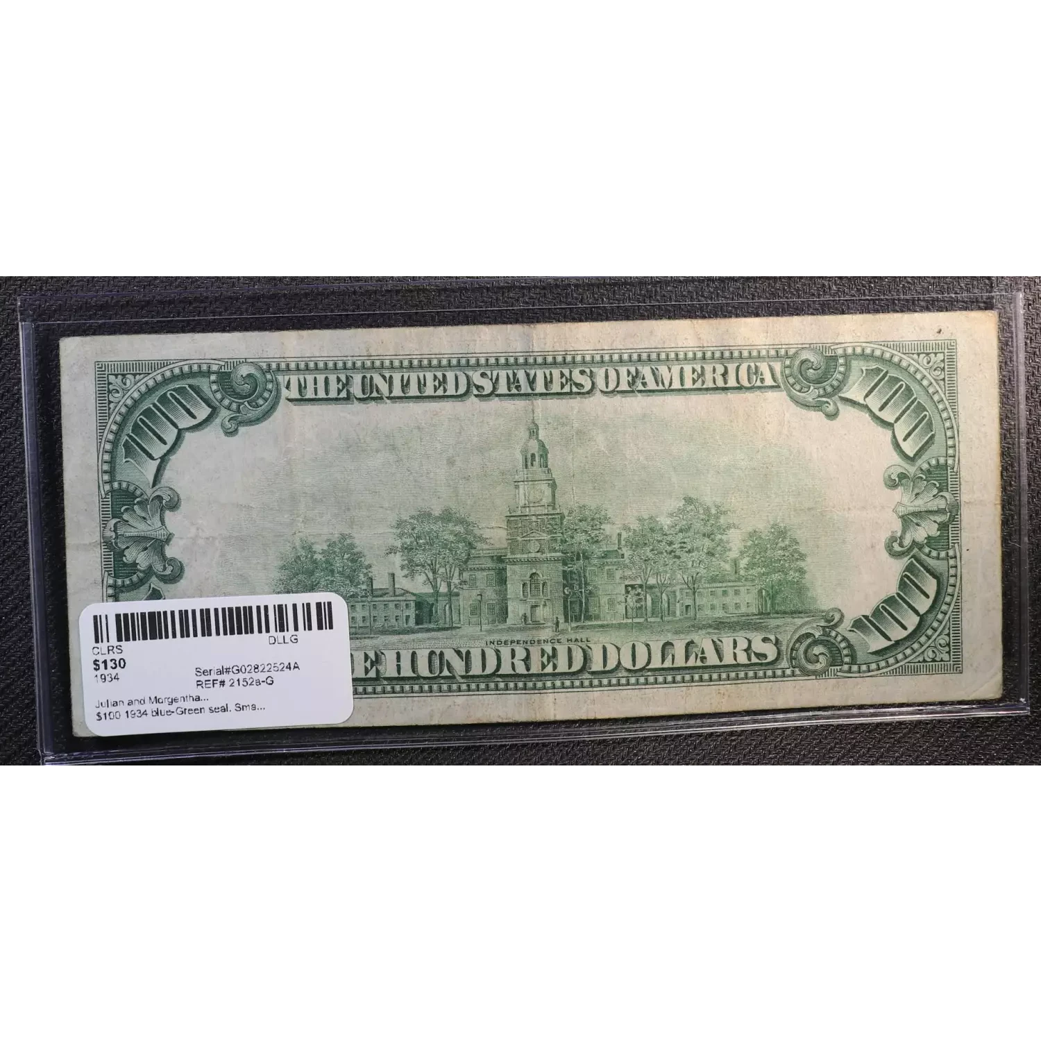 $100 1934 blue-Green seal. Small Size $100 Federal Reserve Notes 2152a-D