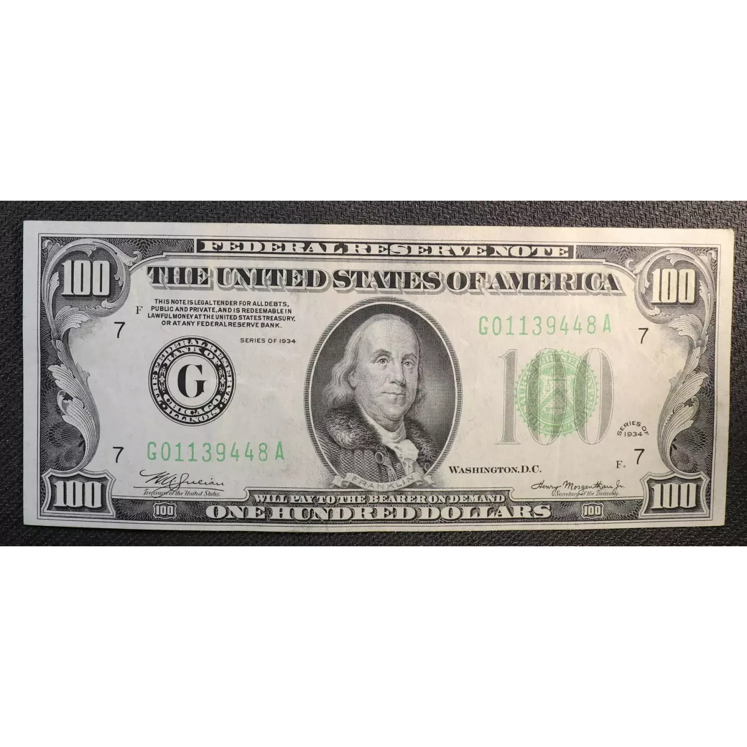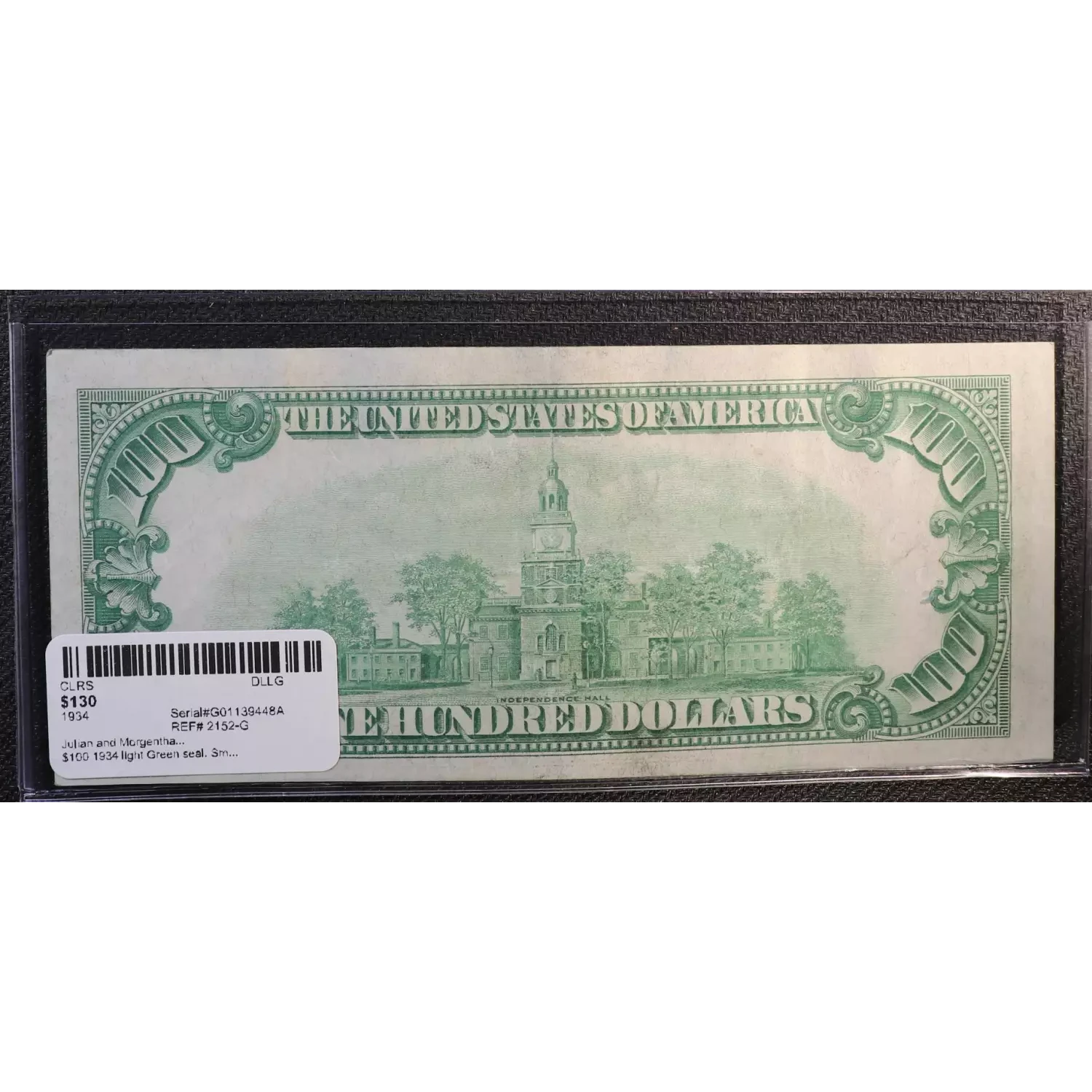 $100 1934 light Green seal. Small Size $100 Federal Reserve Notes 2152-G