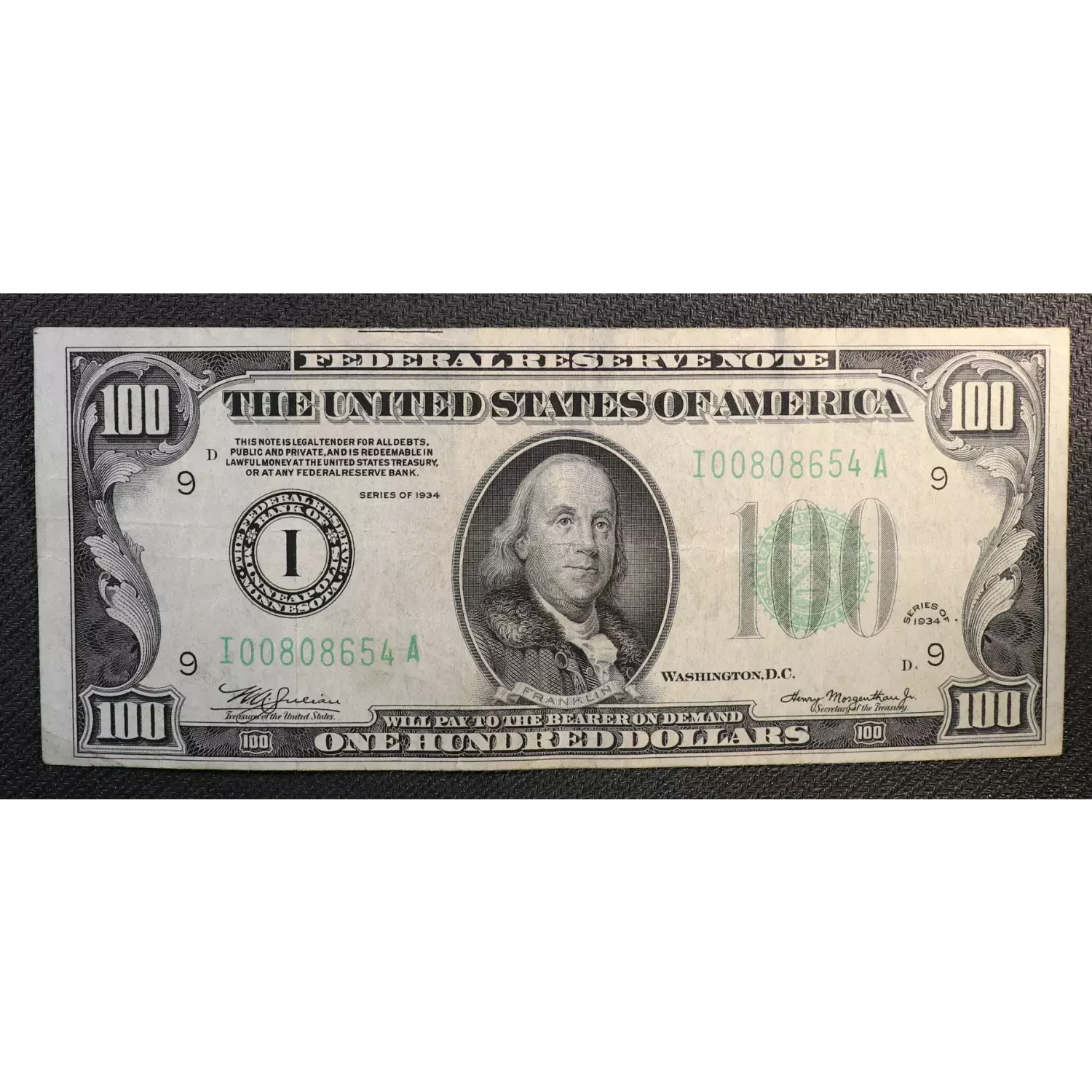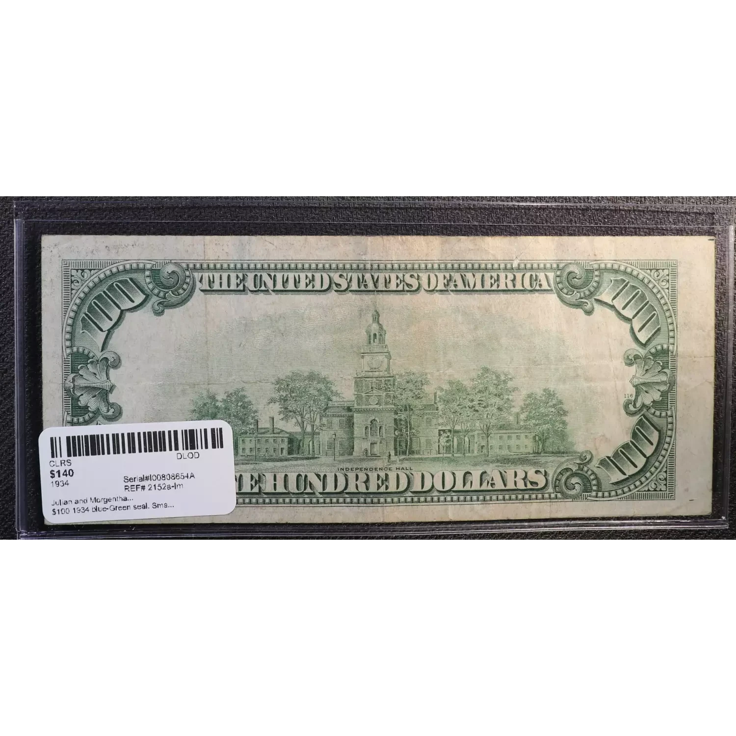 $100 1934 blue-Green seal. Small Size $100 Federal Reserve Notes 2152a-Im