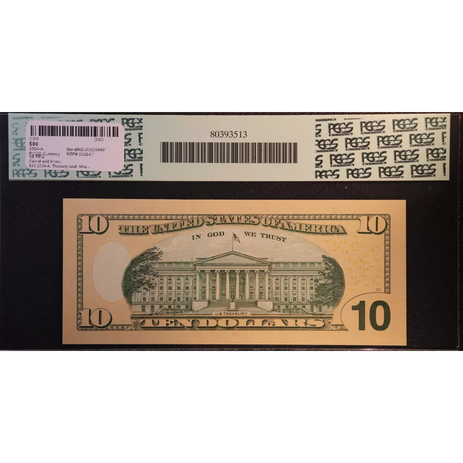$10 2004-A. Treasury seal. Small Size $10 Federal Reserve Notes 2039-L*