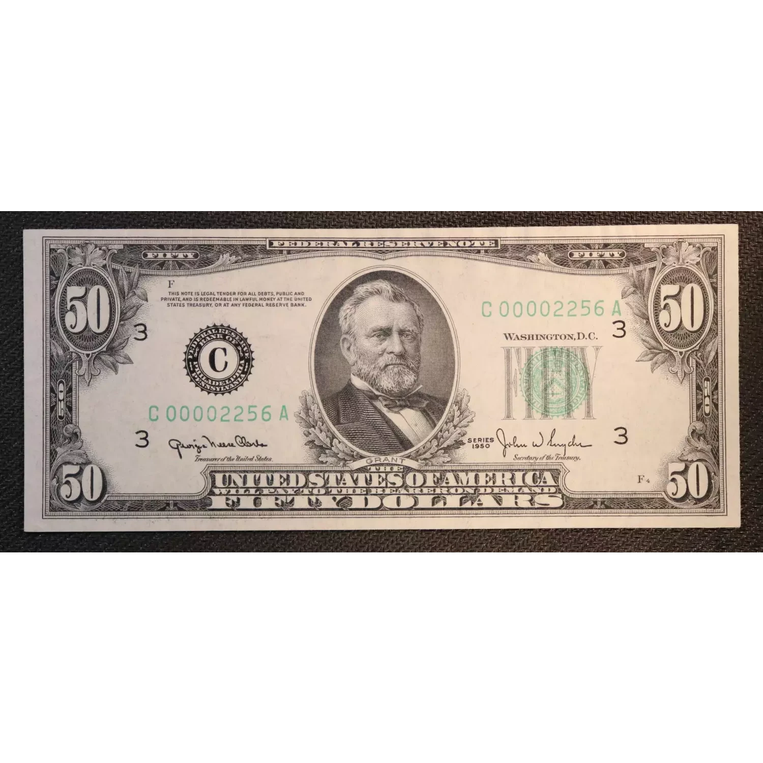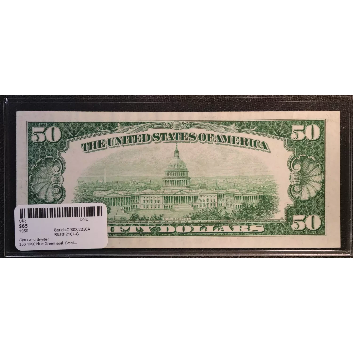 $50 1950 blue-Green seal. Small Size $50 Federal Reserve Notes 2107-C
