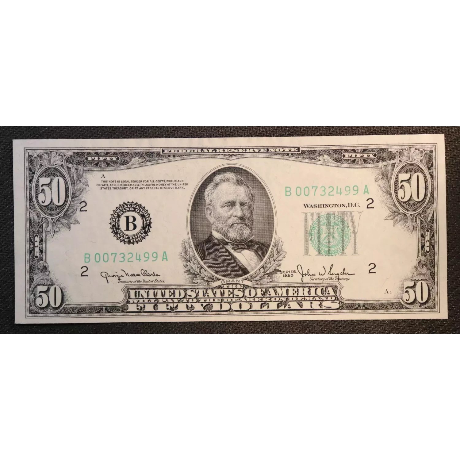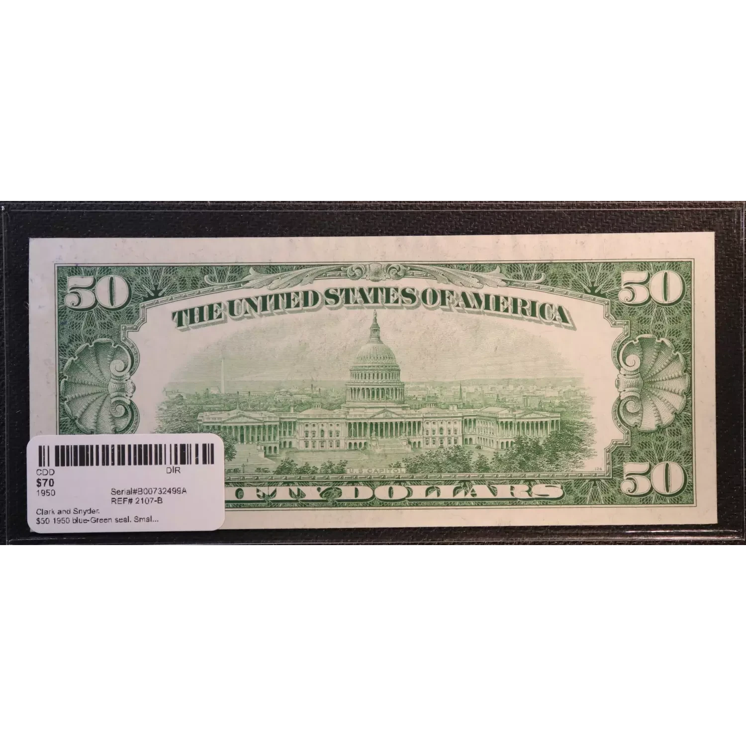 $50 1950 blue-Green seal. Small Size $50 Federal Reserve Notes 2107-B