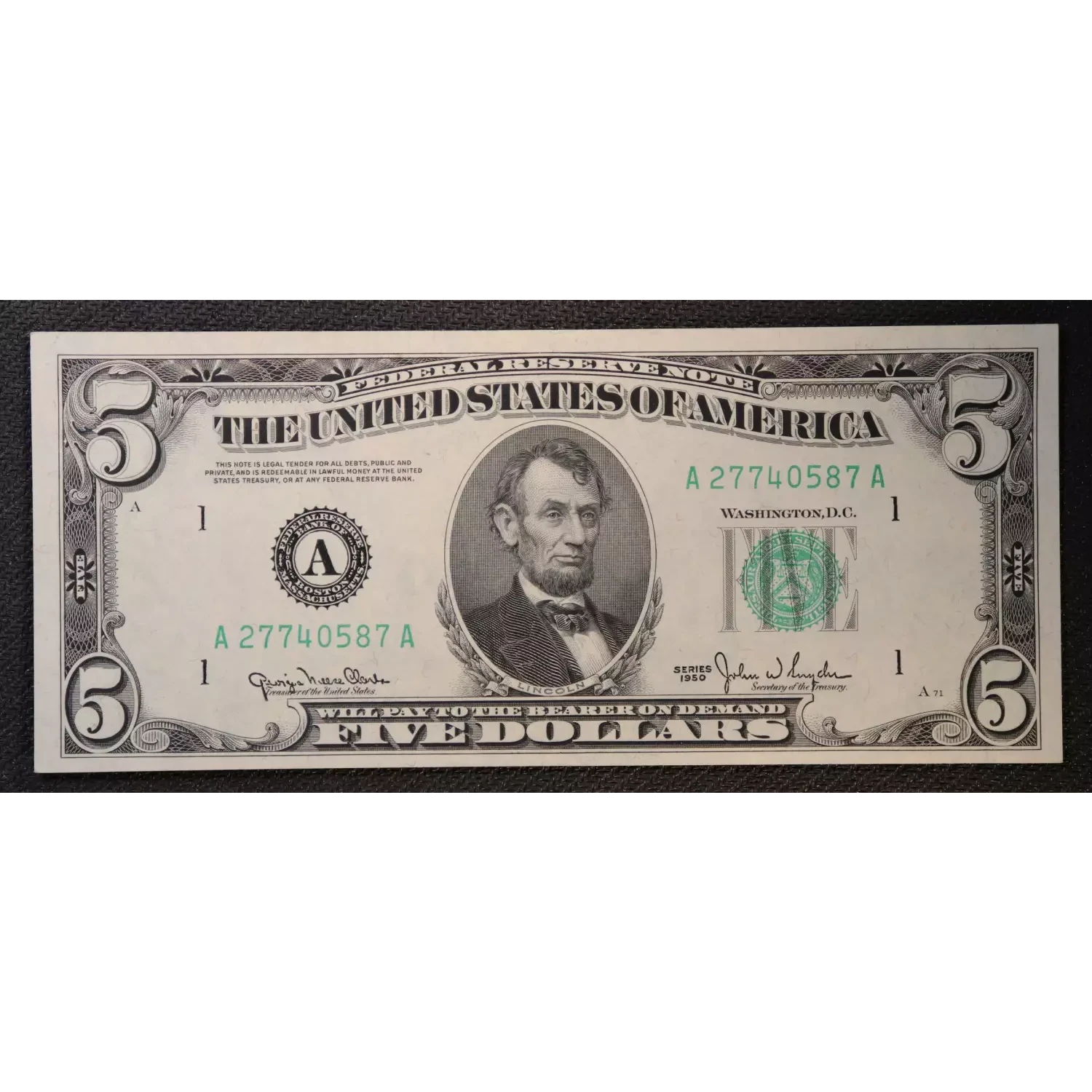 $5 1934-D. blue-Green seal. Small Size $5 Federal Reserve Notes 1961-A