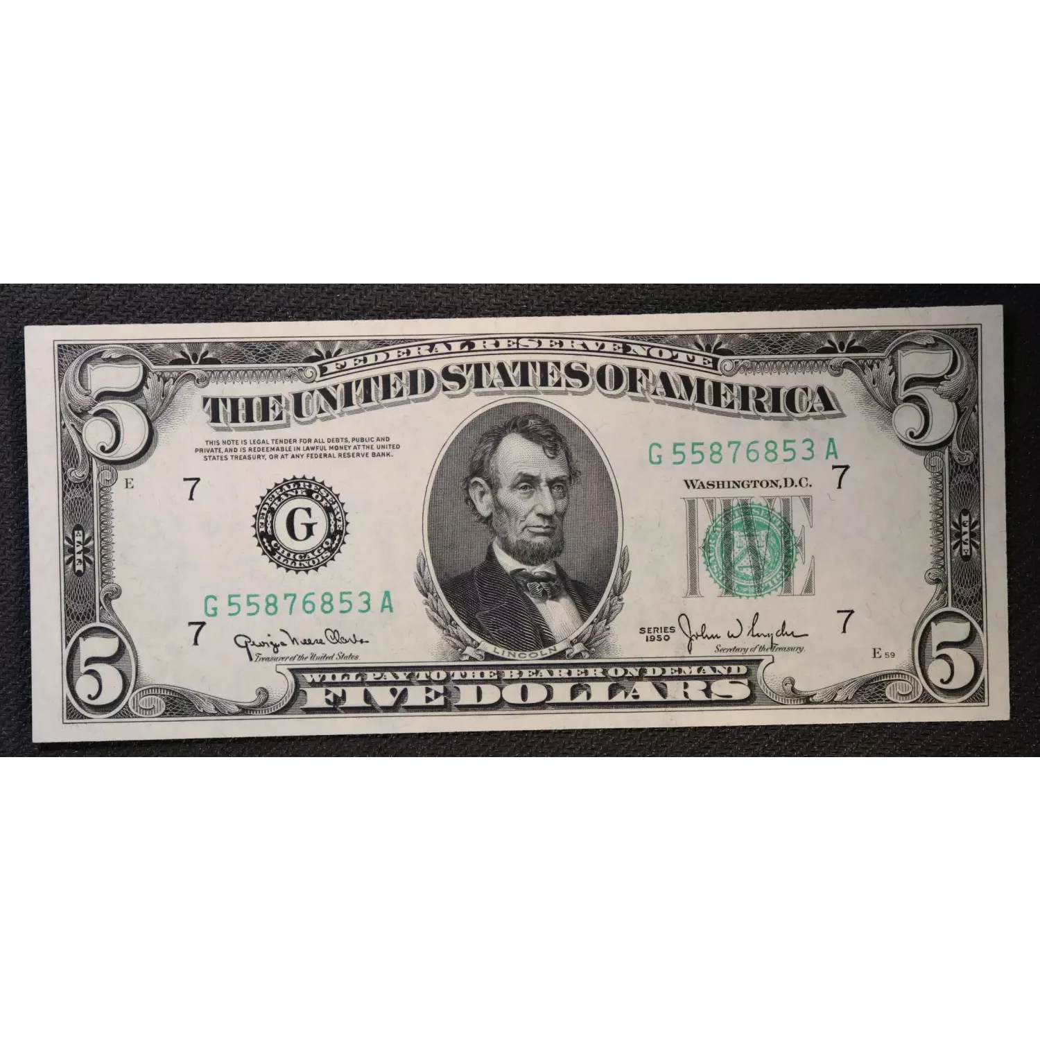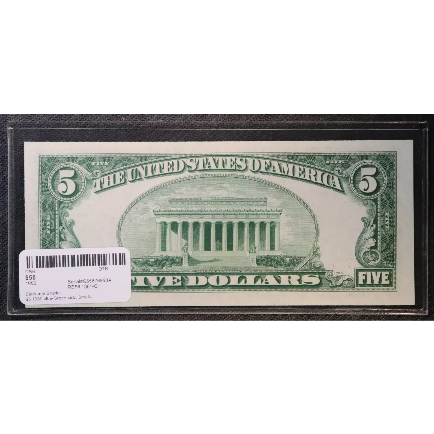 $5 1950 blue-Green seal. Small Size $5 Federal Reserve Notes 1961-G