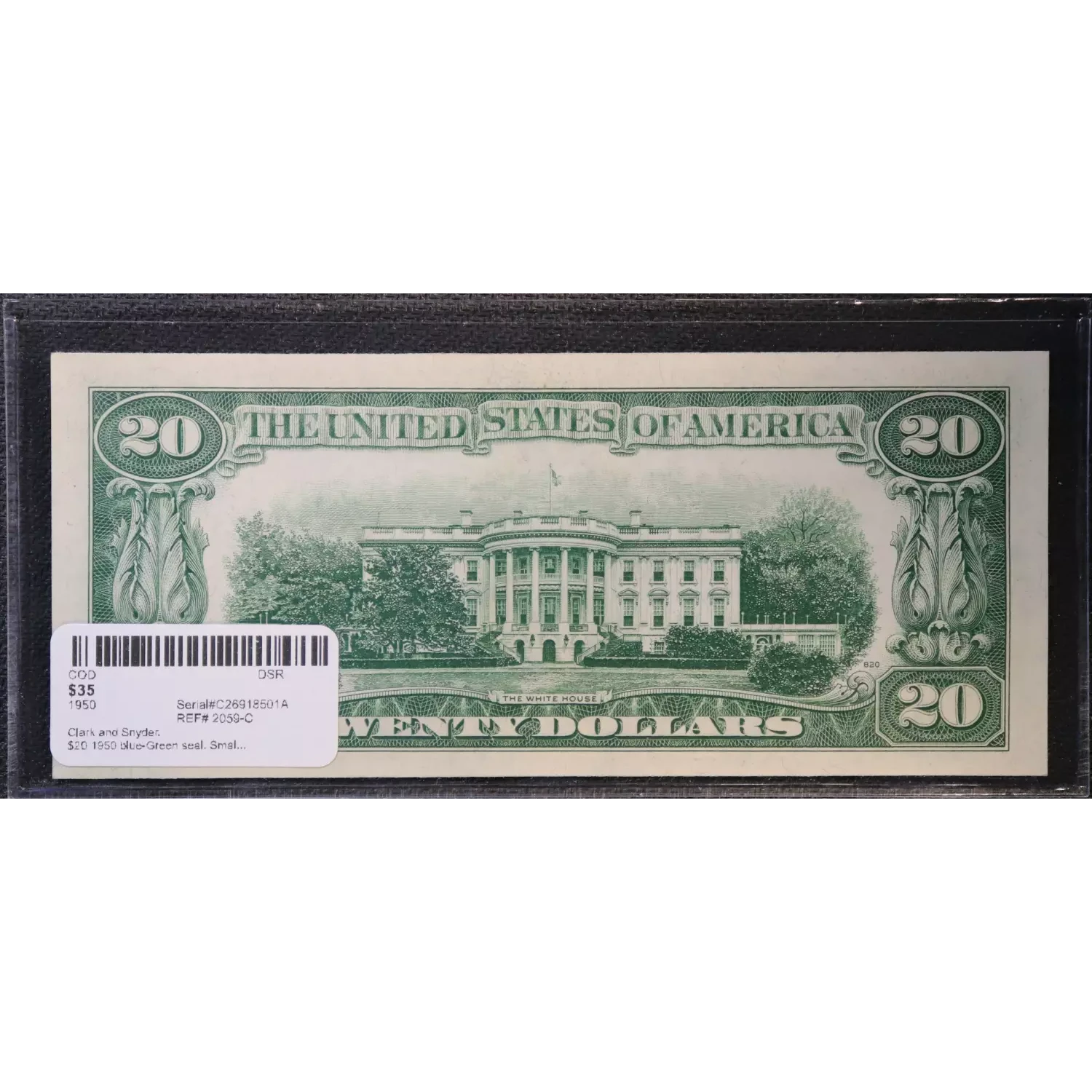 $20 1950 blue-Green seal. Small Size $20 Federal Reserve Notes 2059-C