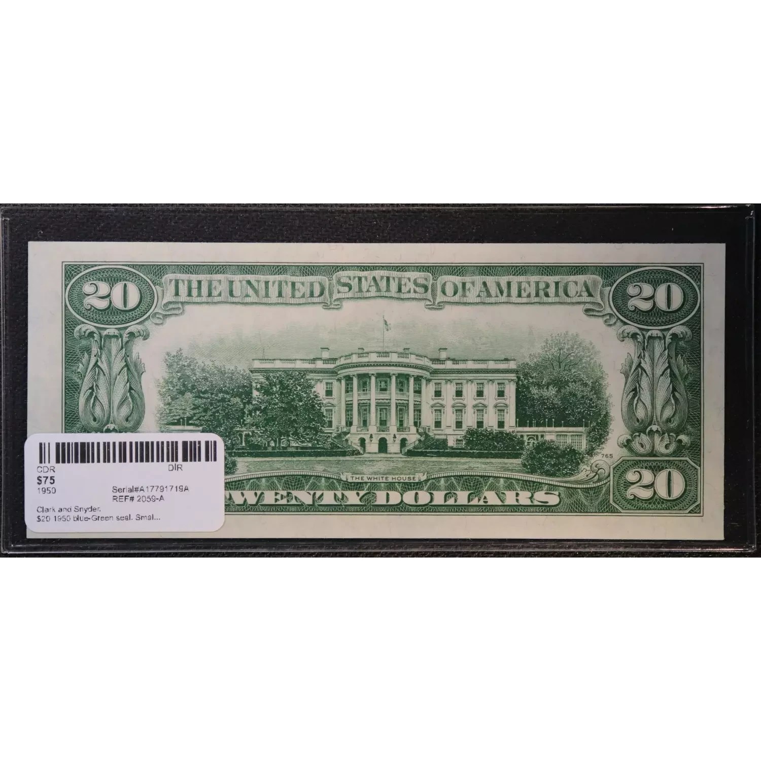 $20 1950 blue-Green seal. Small Size $20 Federal Reserve Notes 2059-A