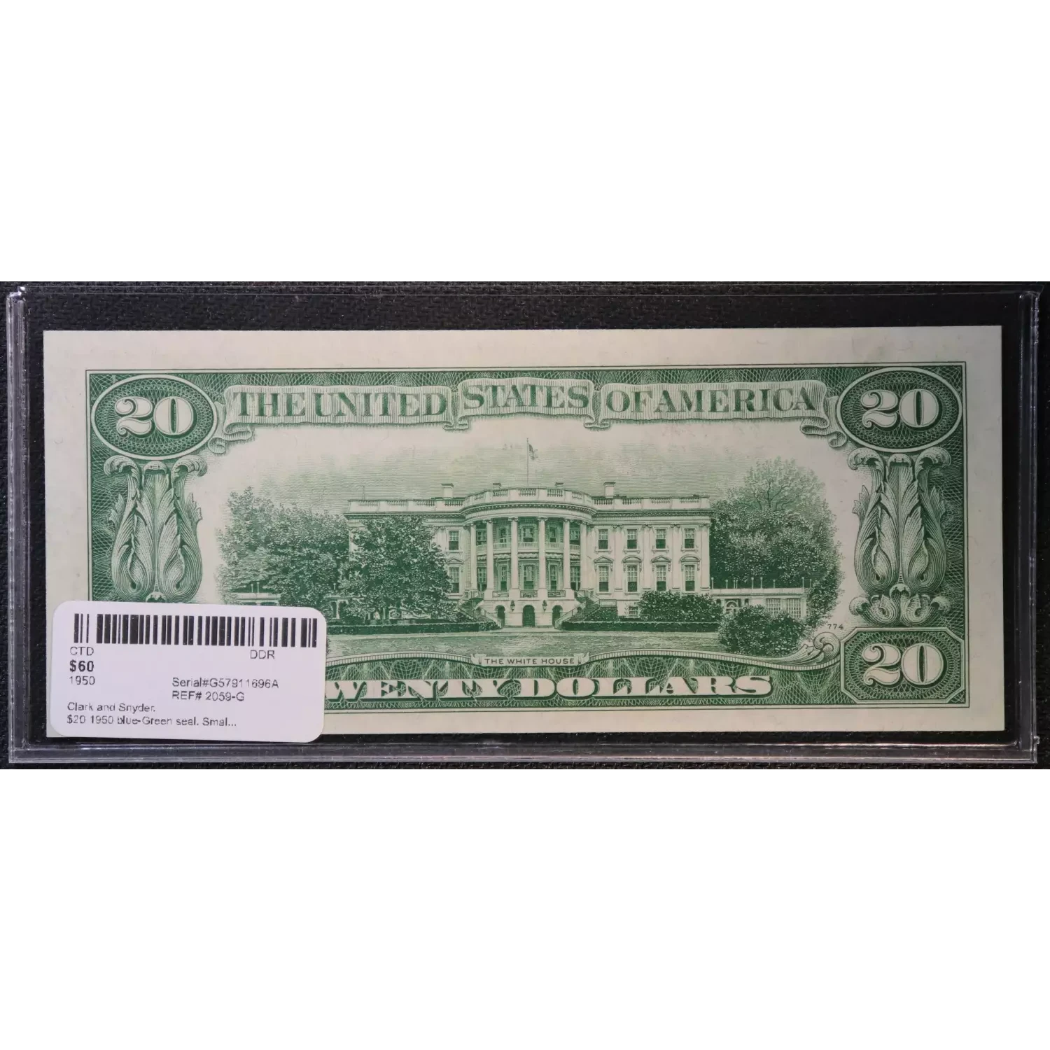$20 1950 blue-Green seal. Small Size $20 Federal Reserve Notes 2059-G