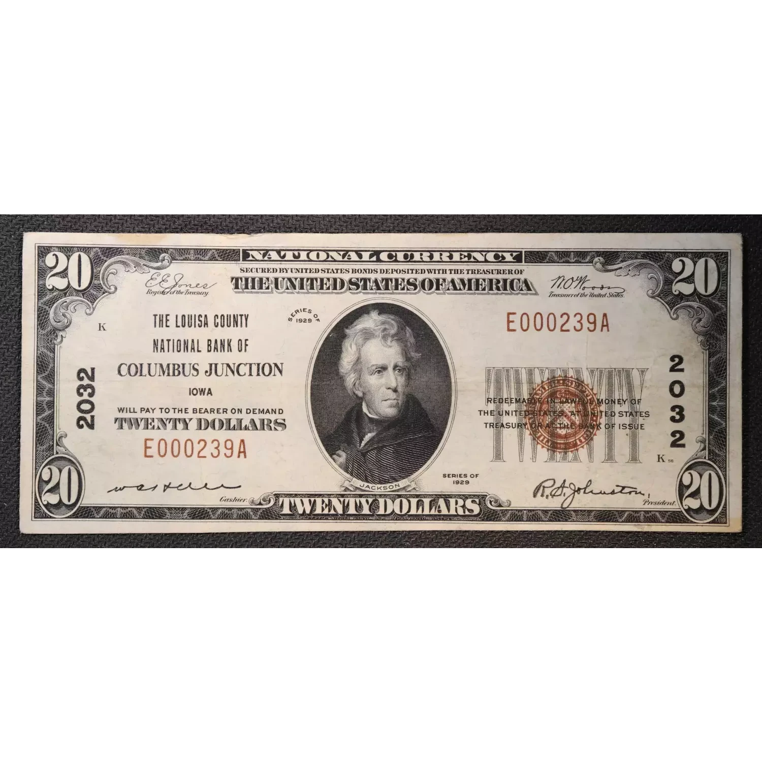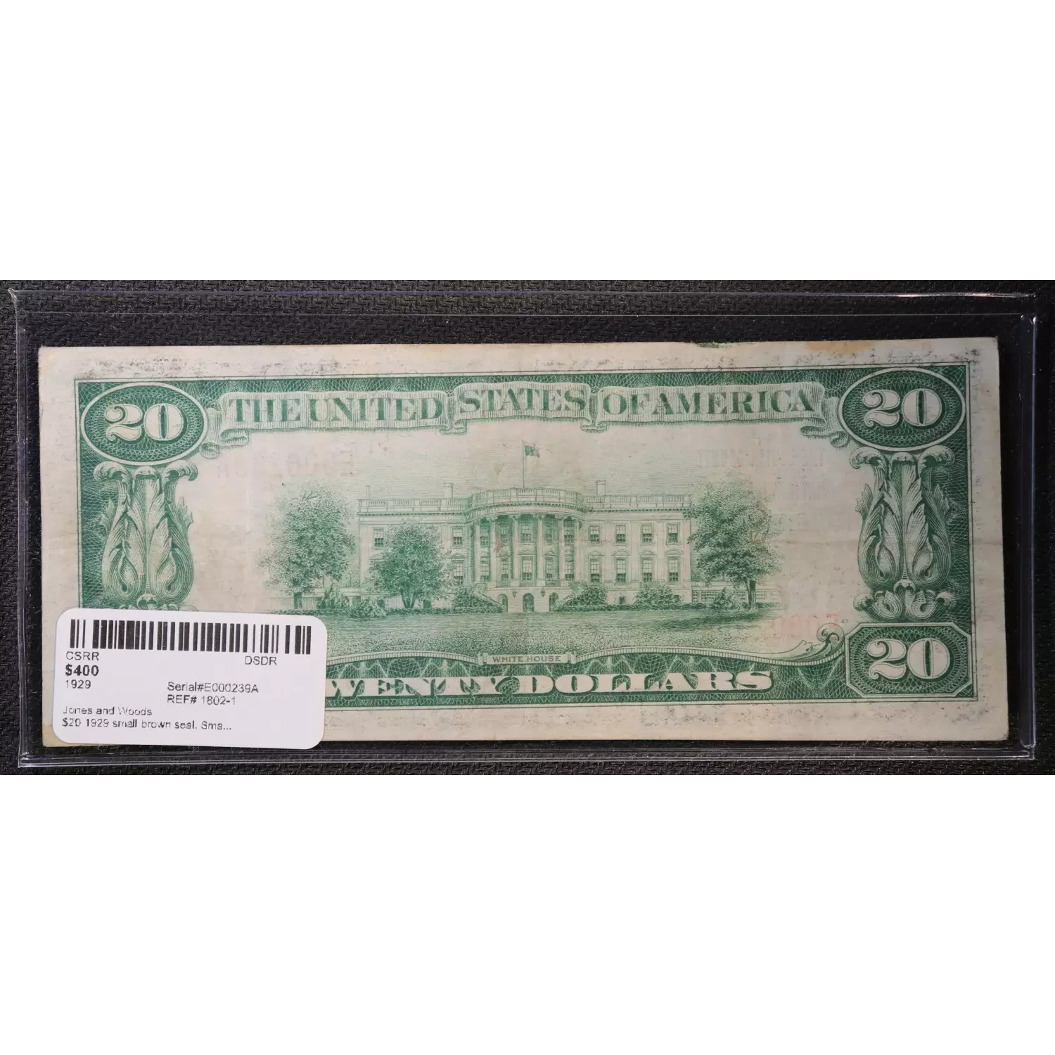 $20 1929 small brown seal. Small National Bank Notes 1802-1