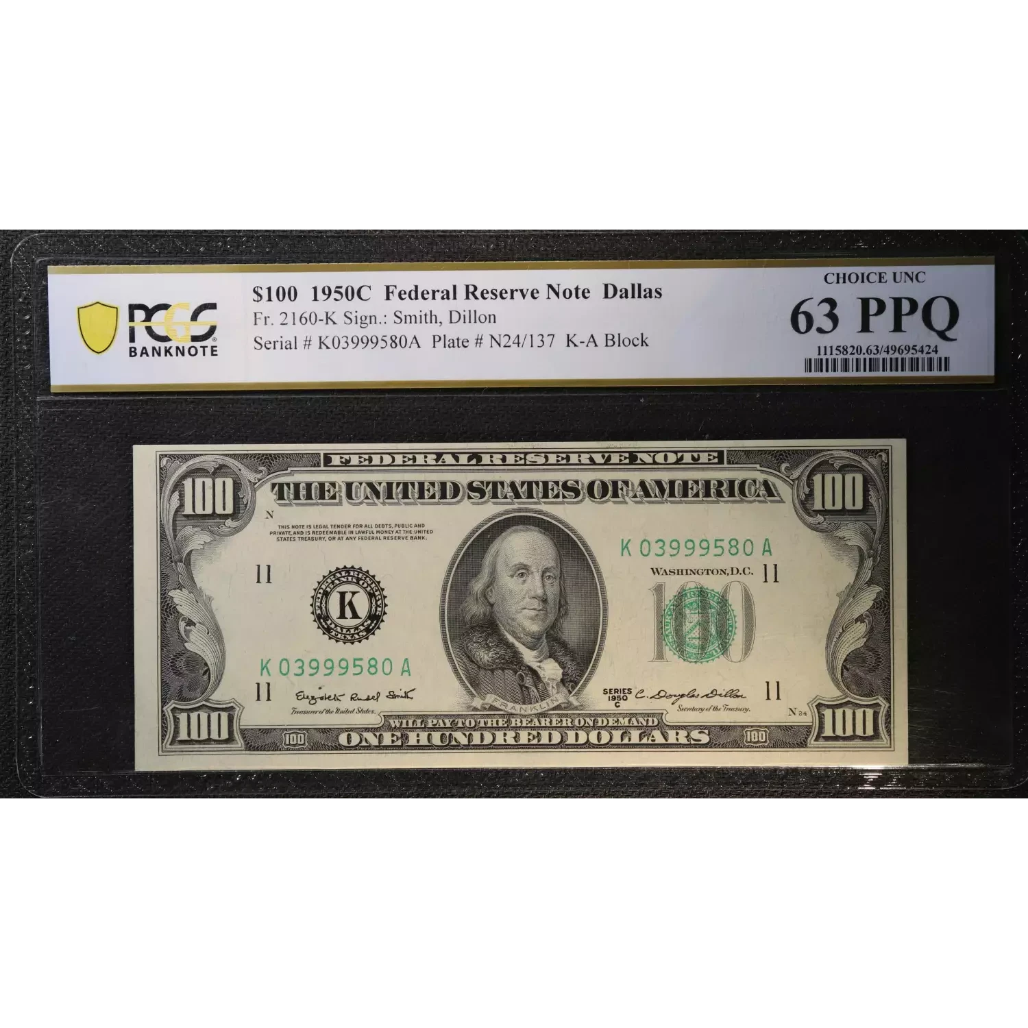$100 1950-C. Small Size $100 Federal Reserve Notes 2160-K