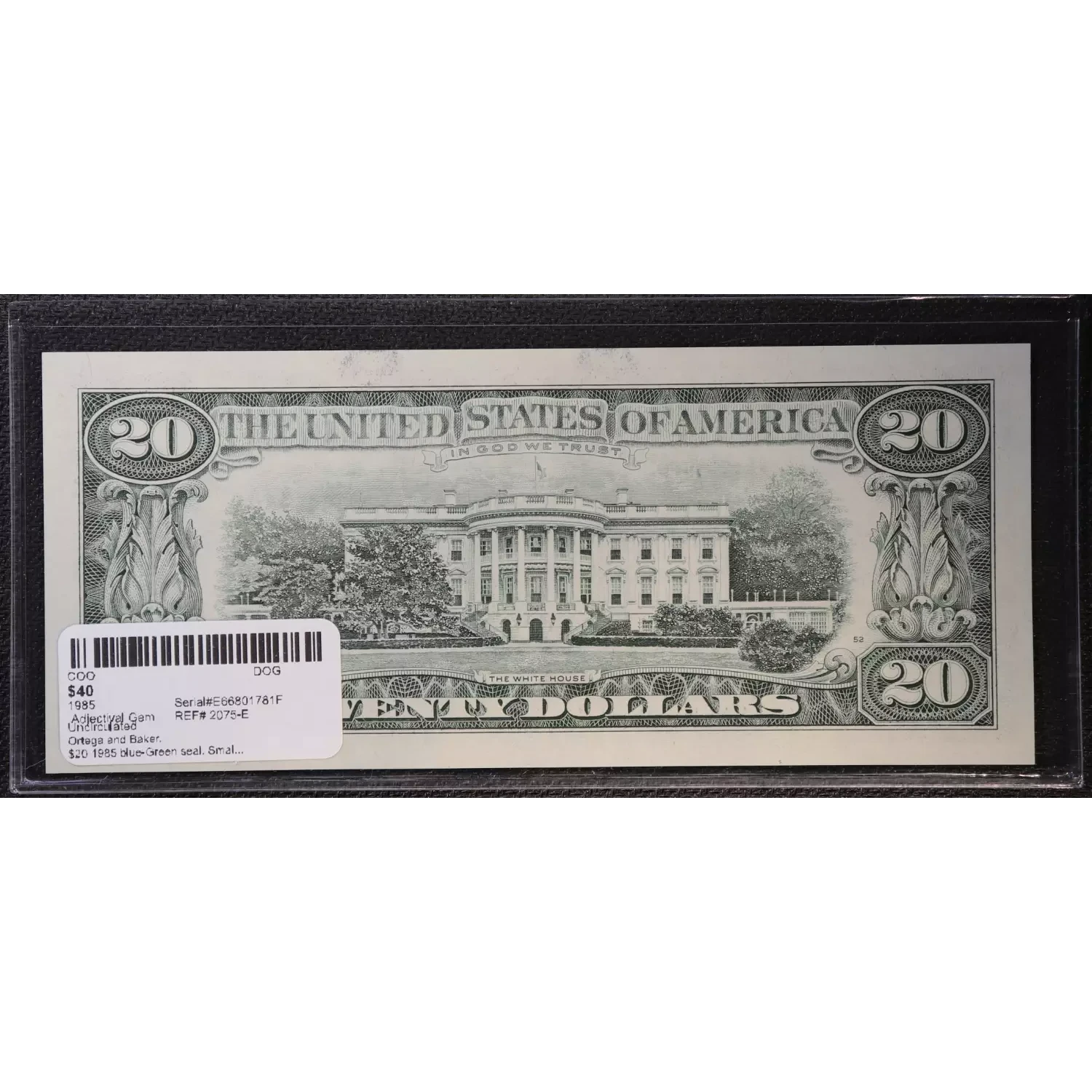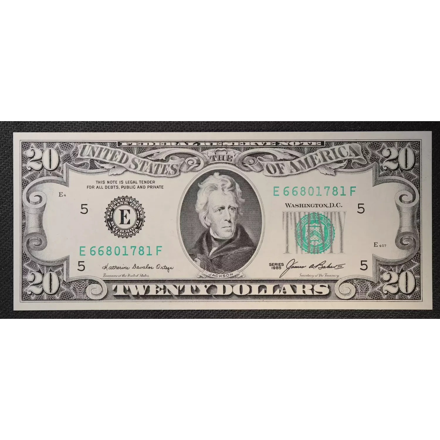 $20 1985 blue-Green seal. Small Size $20 Federal Reserve Notes 2075-E