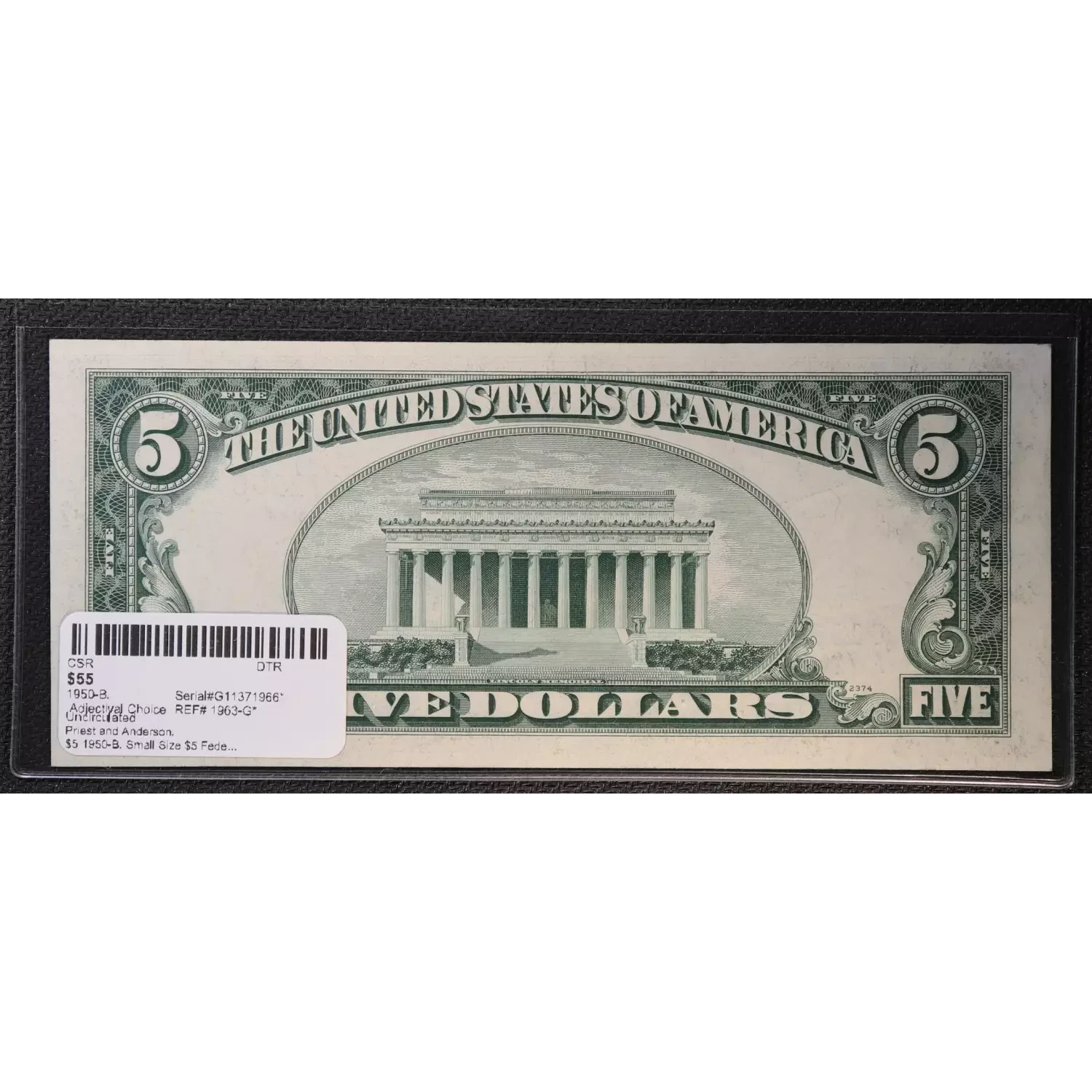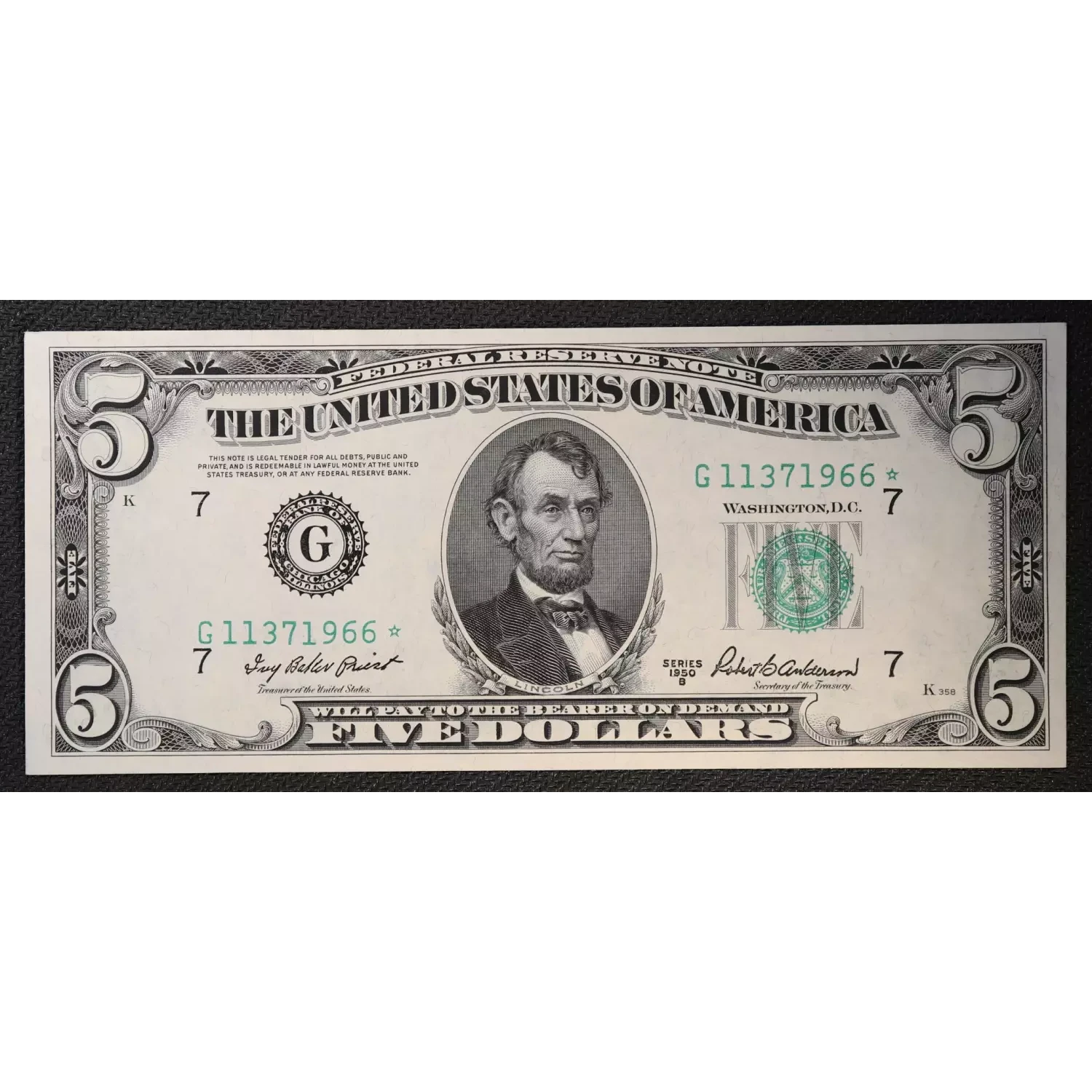 $5 1950-B. Small Size $5 Federal Reserve Notes 1963-G*