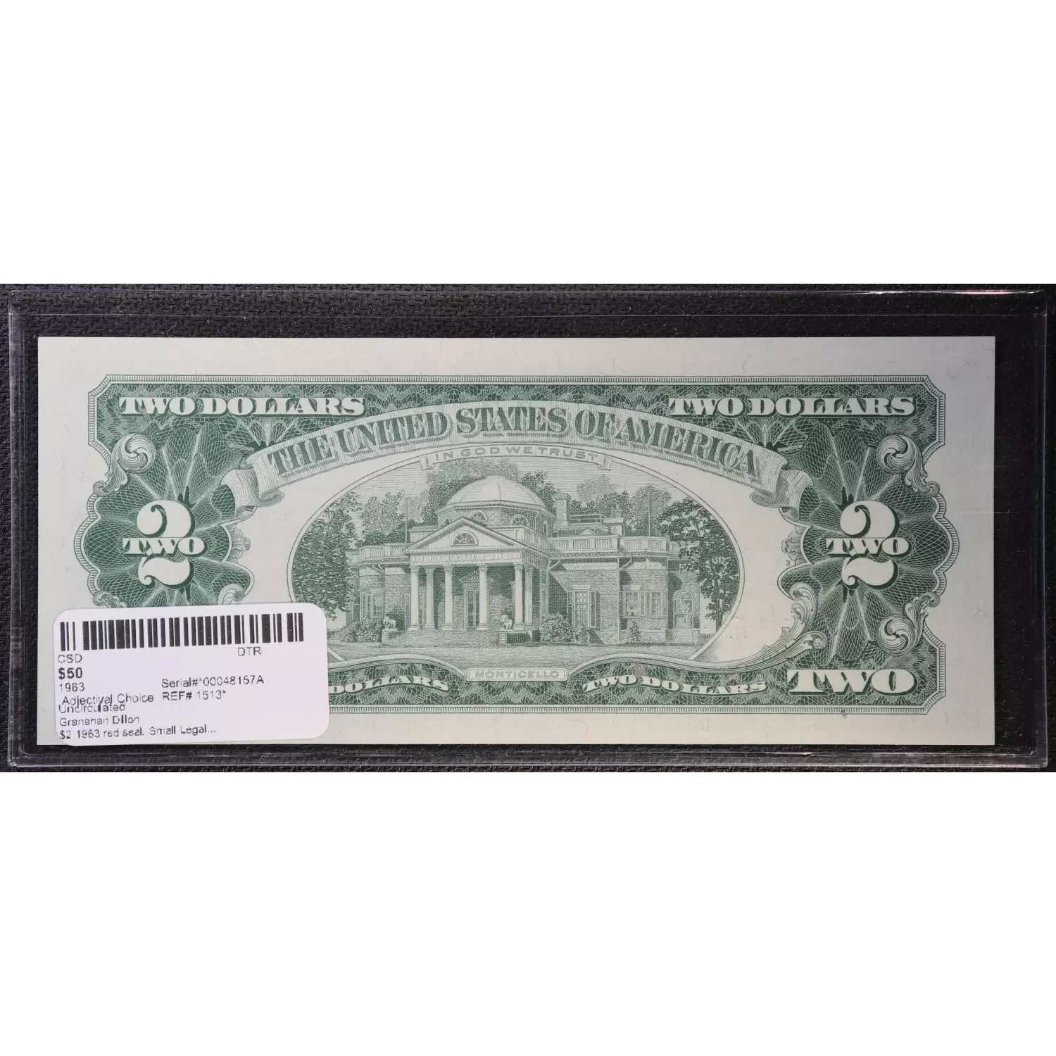 $2 1963 red seal. Small Legal Tender Notes 1513*