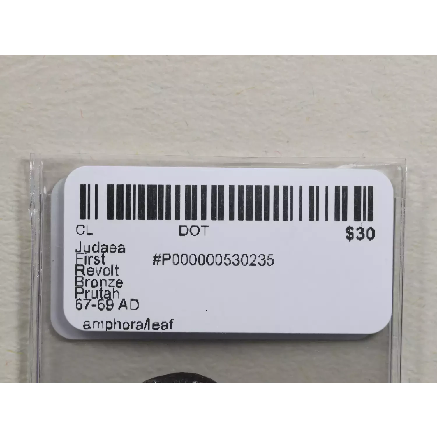 Judaea First Revolt Bronze Prutah 67-69 AD amphora/leaf